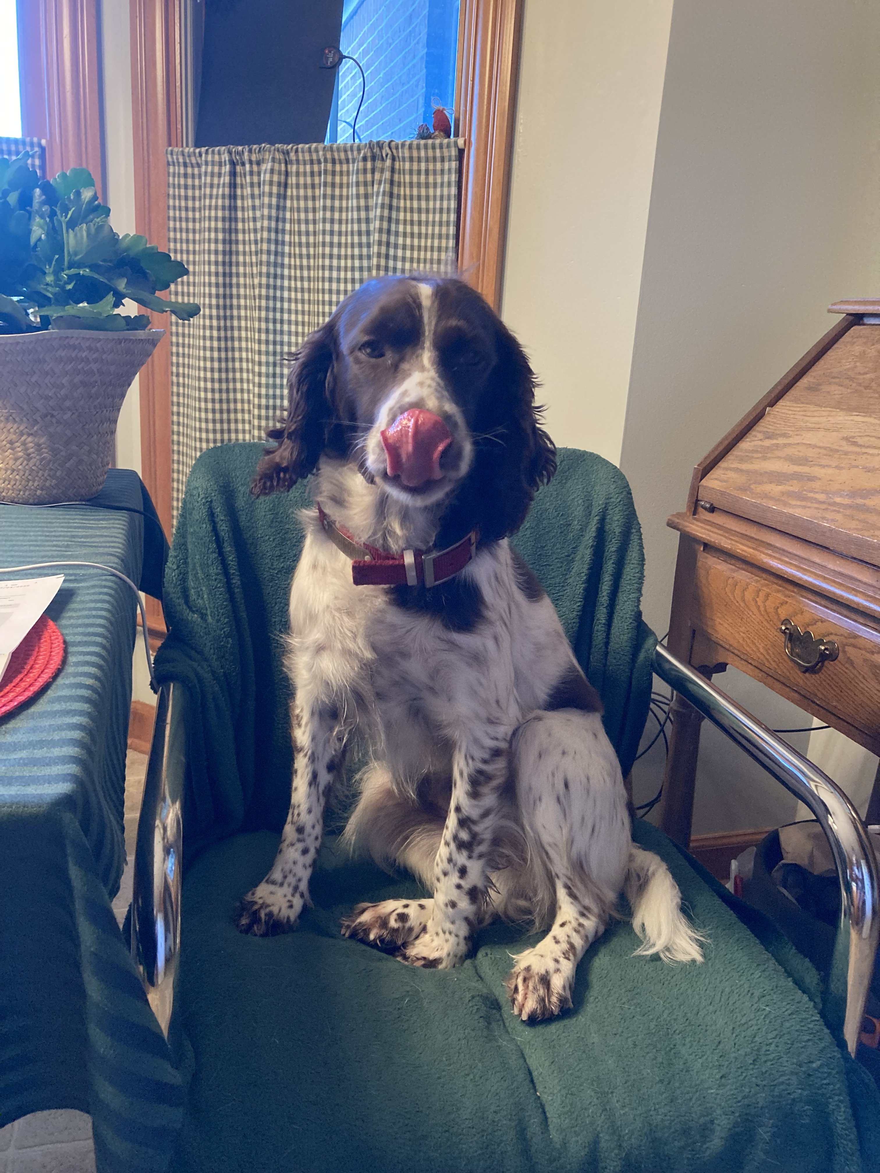In the next photo she's in her chair and knows the PB is close. Best behavior.