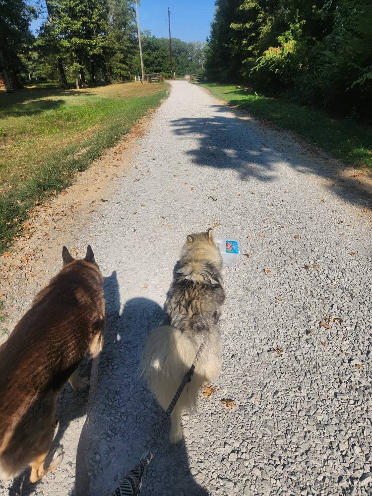 Realistically, I could put a dog bed in a kids wagon and pull her along.