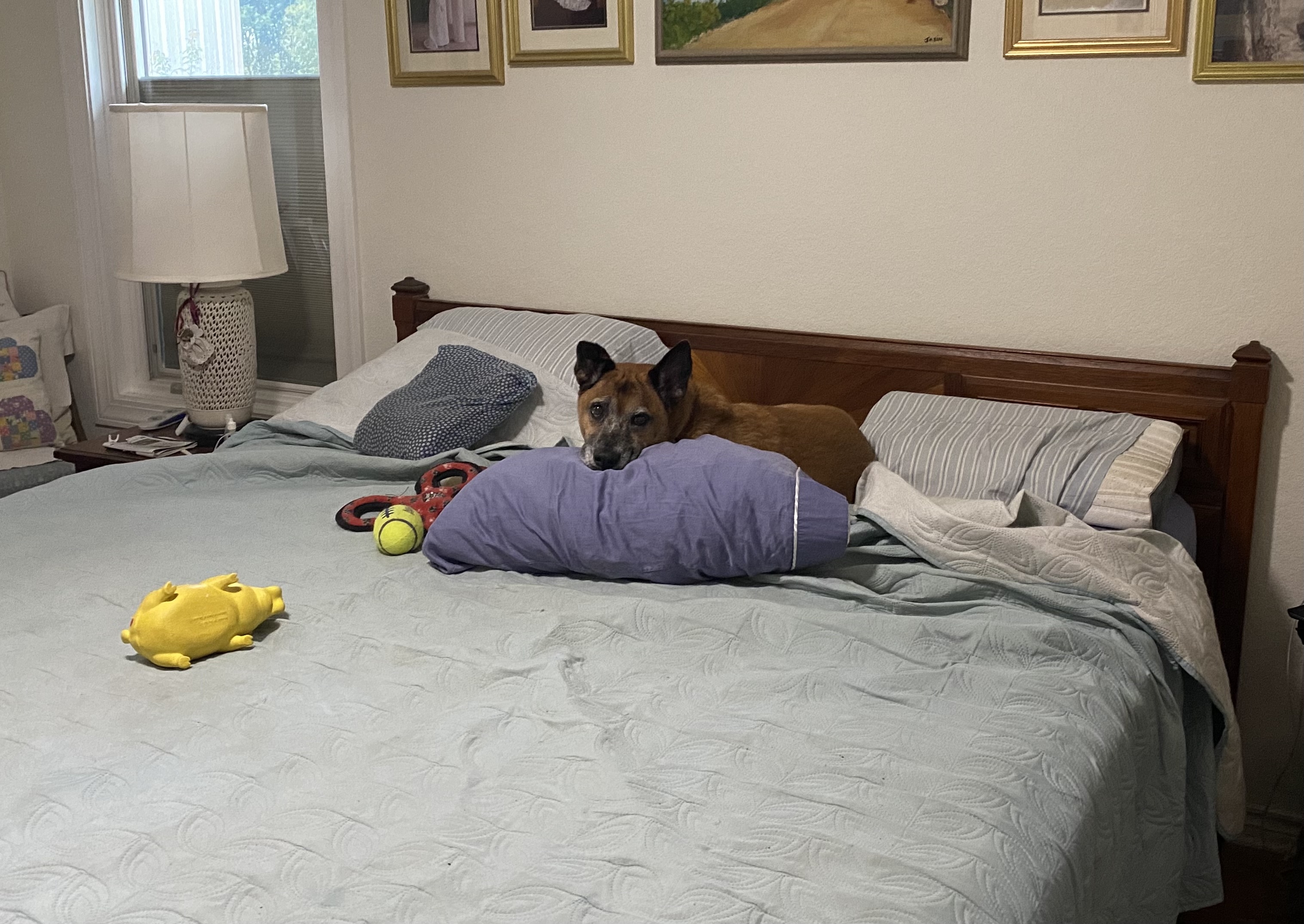 My daughter brings her dog when she visits. This was a couple days ago, my feet in the pic. It a rescue dog, a mix.