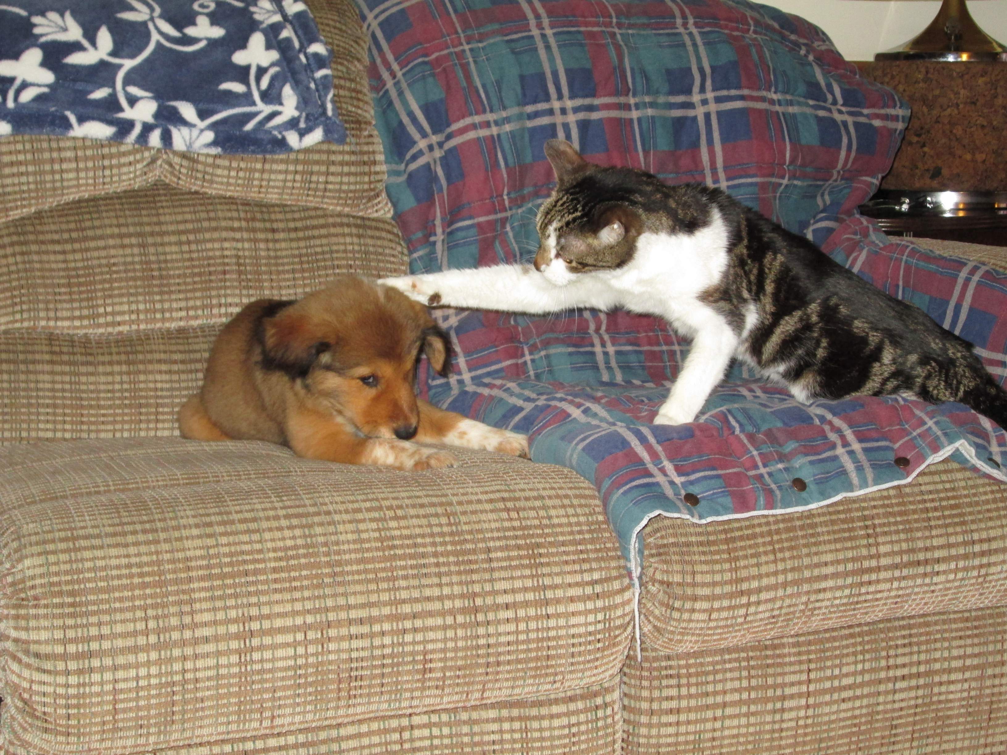 Our 19 1/2 yr old cat Stonewall helps with the dicipline :eek: :laughing:. These pics are between 1 - 2 weeks old.