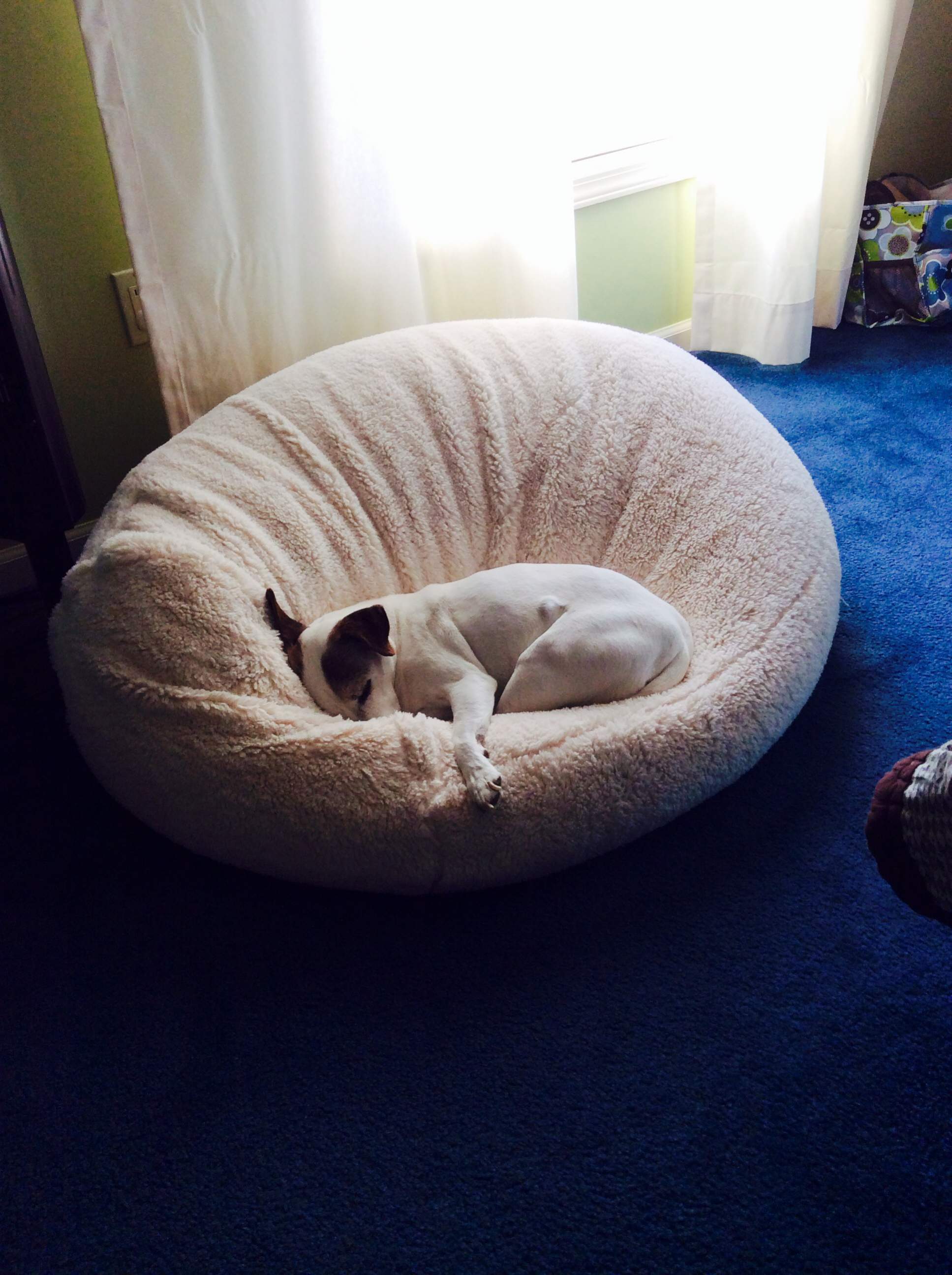 Cody might be comfy in that little bed but I'll bet he tries to get into the big bed with you at night for some snuggles.