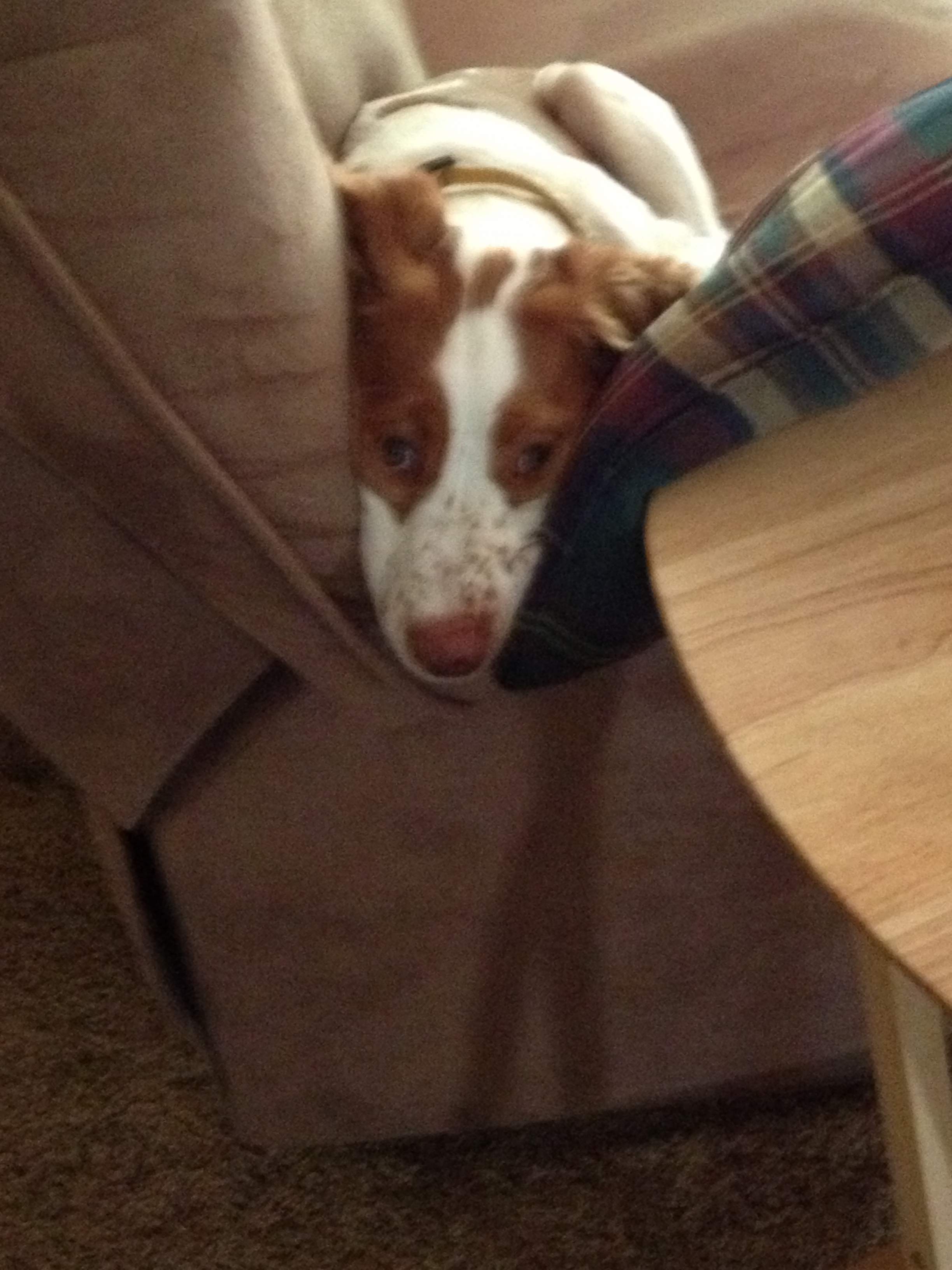 This is Tulliver shortly after he discovered that the Cone of Shame could be defeated by running at a high rate of speed between two closely spaced trees.