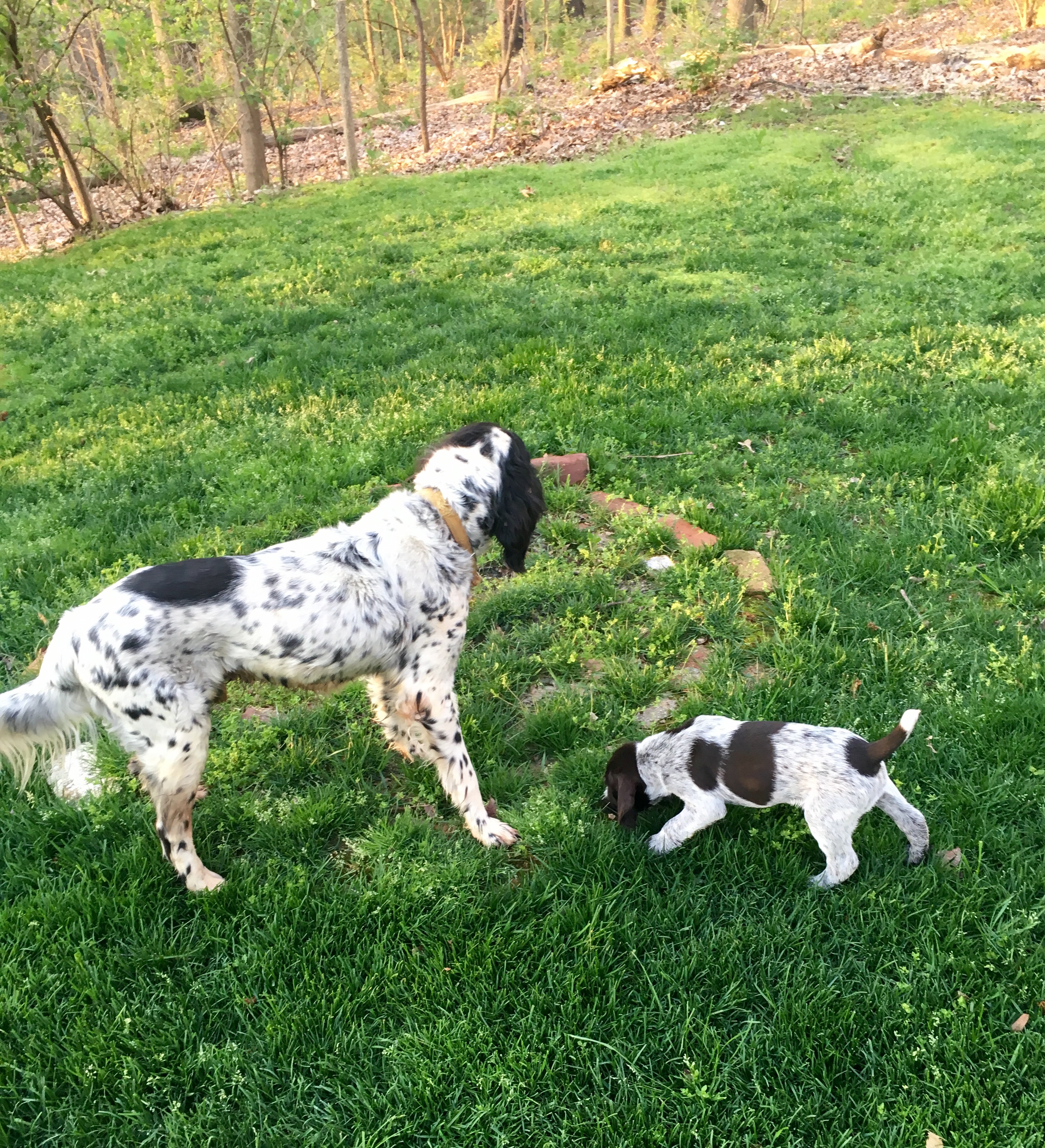 Got a new pup last week. The old guy isn't liking him one bit. Drathaar pup, named him Dirk. He's been a pleasure so far. (Just four nights though.).