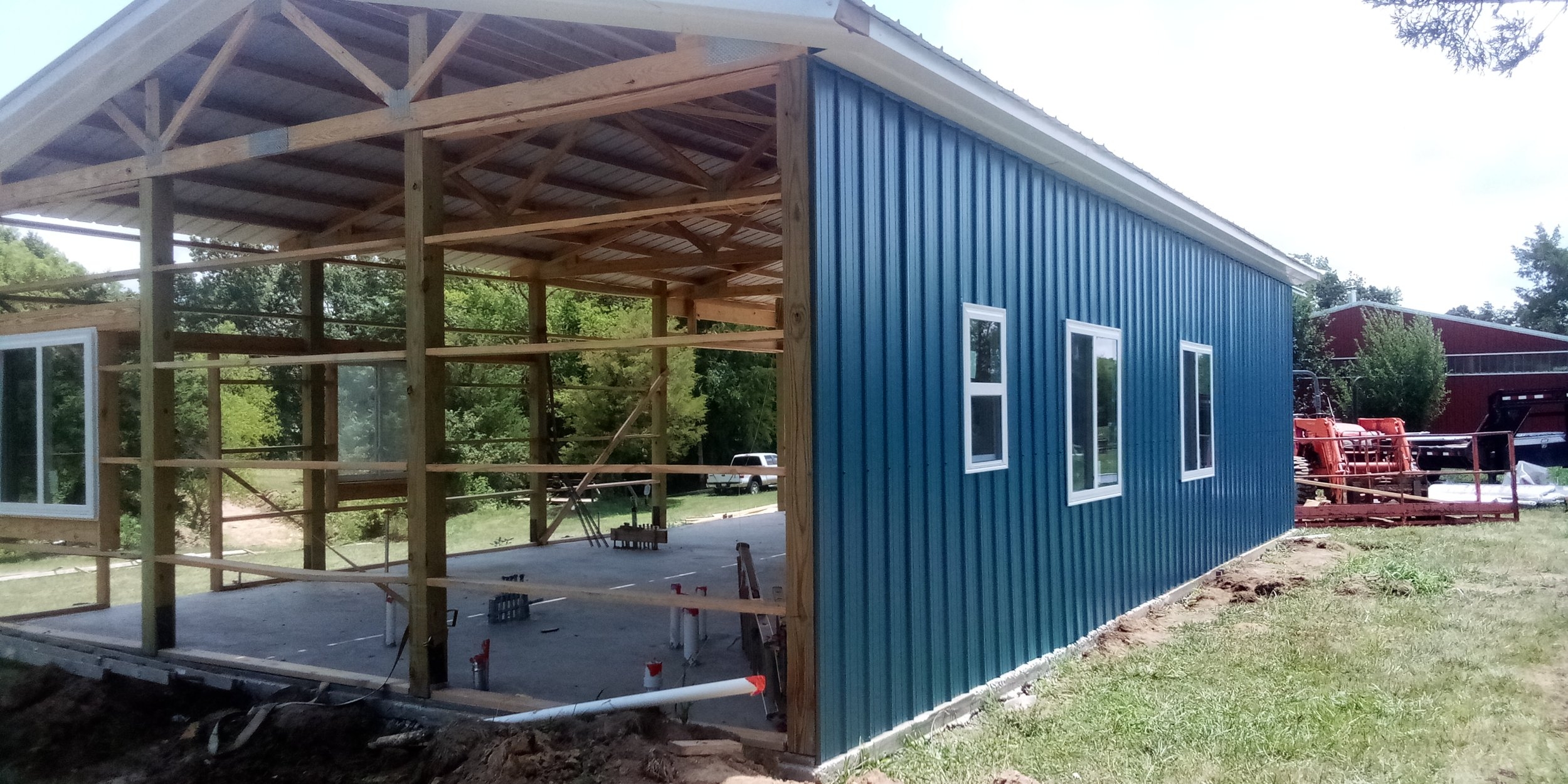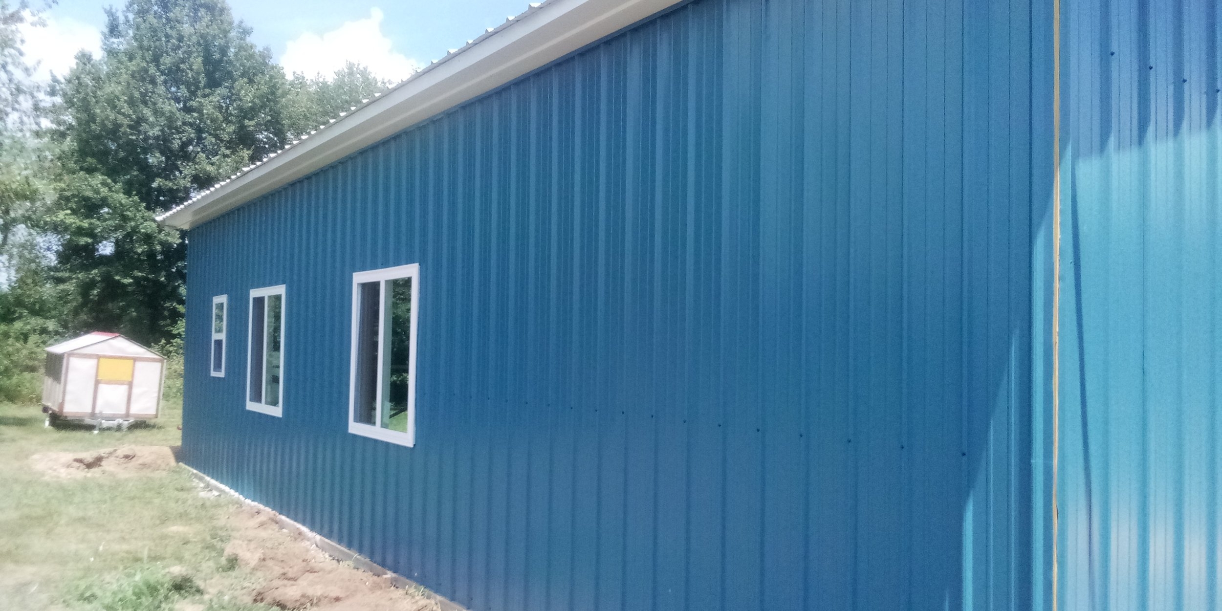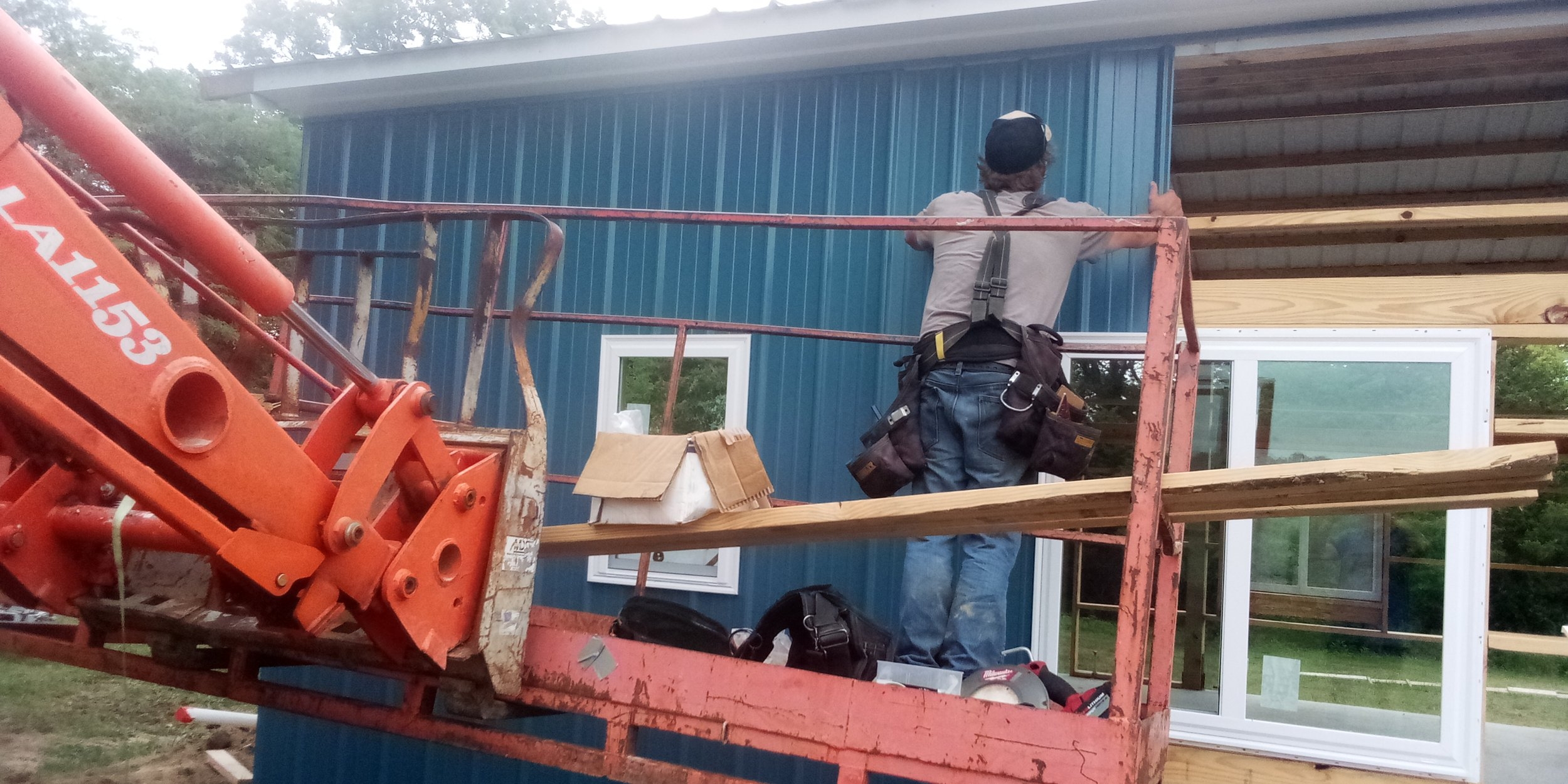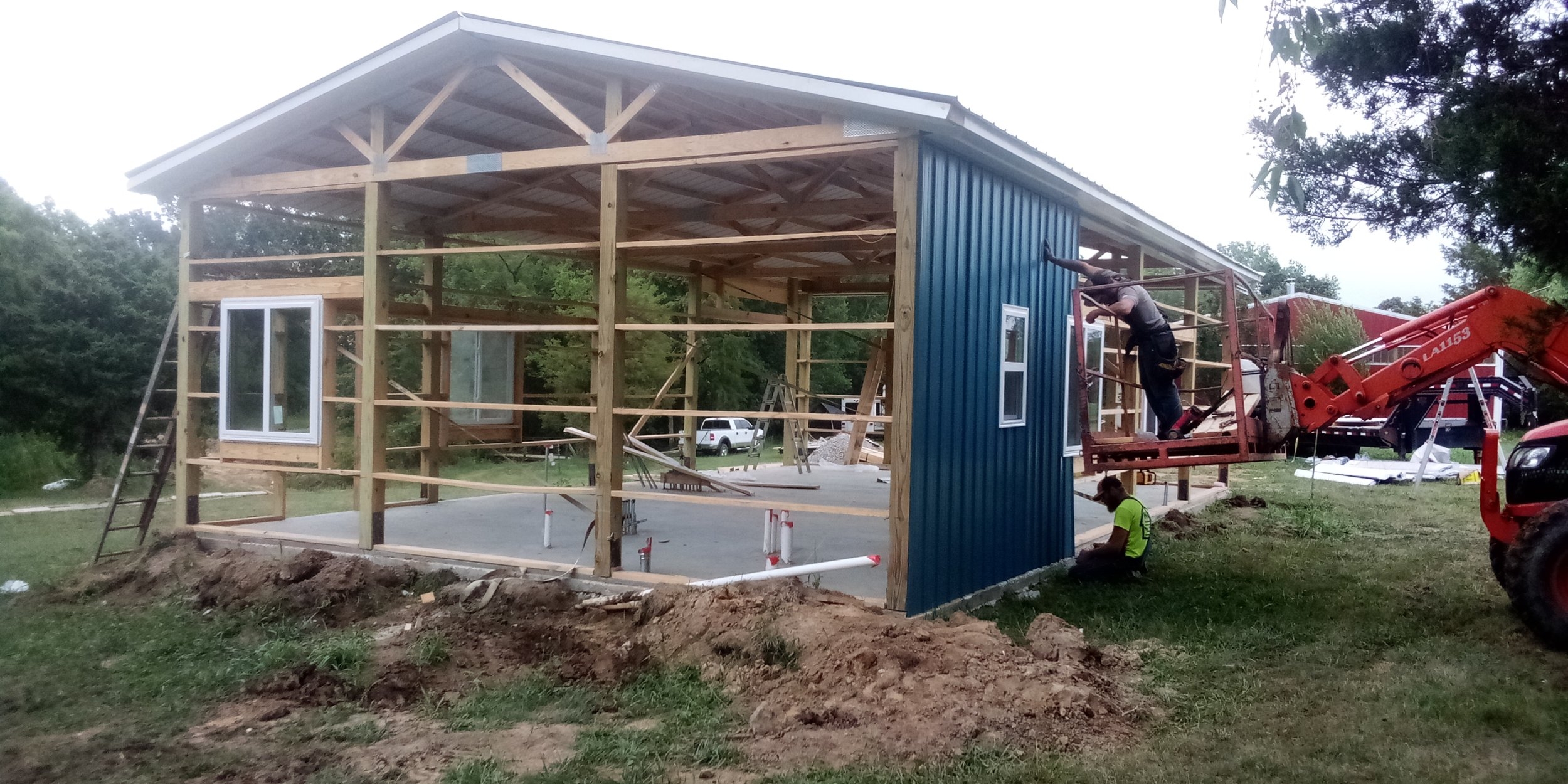 More progress!!! Builder says main shell will be complete by Tuesday July 11 Front porch/lean to completed shortly after Insulation contractor scheduled for Thursday July 13 Septic trench should be started tomorrow or Saturday. I’ll be on-site Saturday to build 2x6 demising wall and set electrical panel