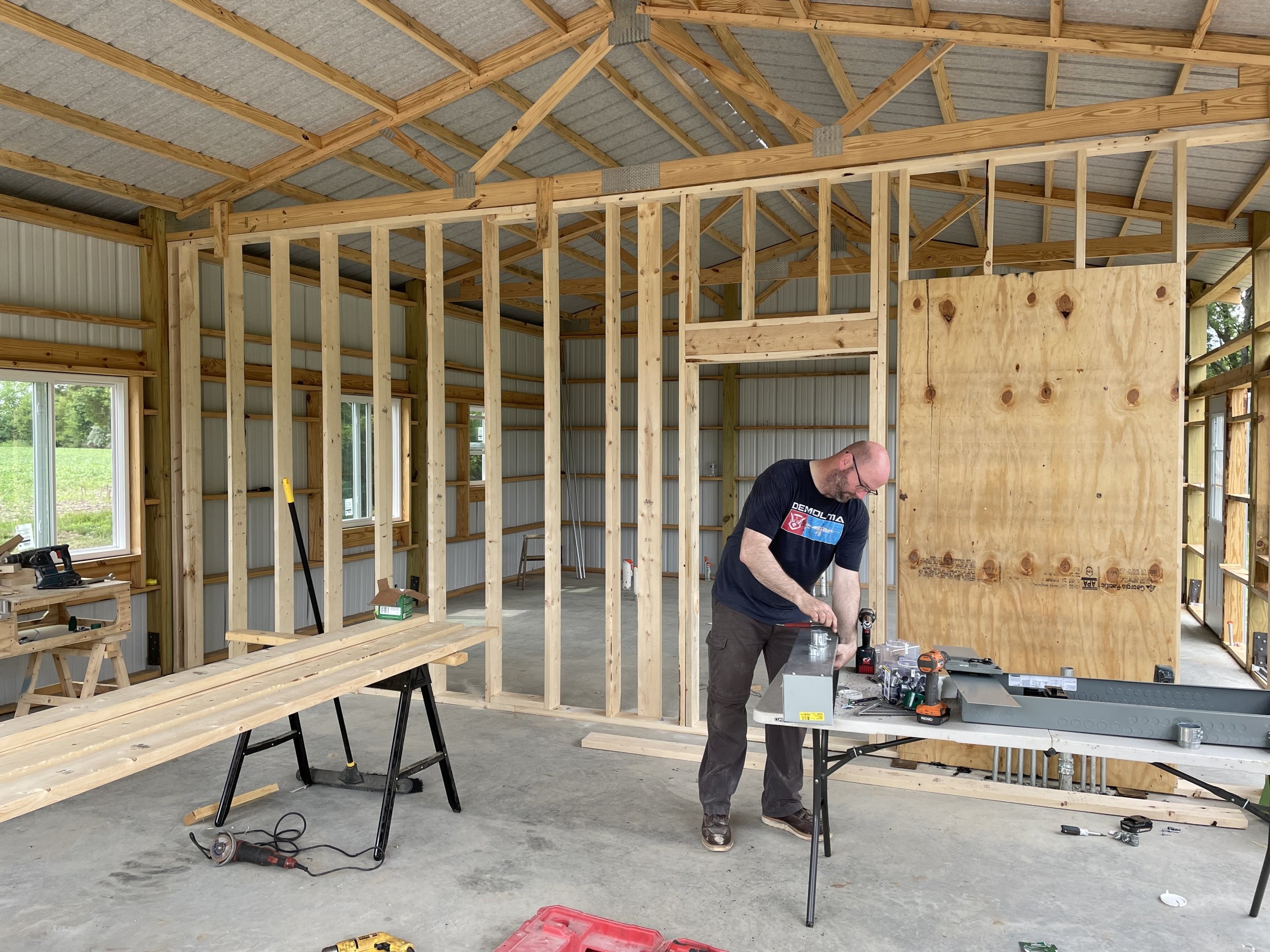 Jul 8, 2023 / Doorman’s next big adventure Thread Starter #87 OP D Doorman63 Gold Member Joined Jun 27, 2021 Messages 360 Location Illinois Tractor Kubota L2501HST Demising wall and electrical work today.