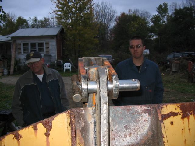 heres another shot of that, the spot to the right with all the paint burned off was where i had to heat the blade to bang out a dent that was in the top edge right where i needed to weld on my bracket, took alot of heat since its about a half inch thick, i held the big propane torch on the back side and my girlfriend held the oxyacetylene on the front and when it was hot enough i took away the heat and gave it a few good blows with the sledge, took a few times of doing this but i got it back to straight