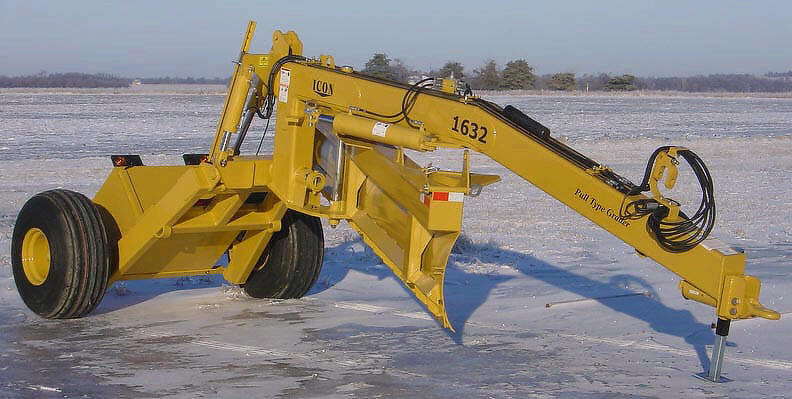 I saw one sitting beside I-75 in a field....looked to be about 16" feet long with a ring tongue on the front and dual wheel at the other end. The blade was in the middle and probably had some type of hyd turn set up. Didn't look to see, but it also probably had a hyd device on the rear to tilt the wheels up/down for depth control... but mostly just guessing. Wouldn't be hard to build. The long wheelbase is what whould do the leveling...and 16" of I beam would be a start on weight to hold the blade depth. [ I entered " inches in stead of ' feet.....senile moment.. ]