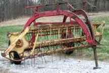 What about using an old NH 55 or 56 hay rake frame to carry a grader blade? Seems like all the essential attachment points are there: raise/lower, tilt, and angle. Maybe a little reinforcement in some areas, but for simple driveway maintenance of semi-loose gravel, just add a used snowplow blade lip to a channel frame and put some weight on it.