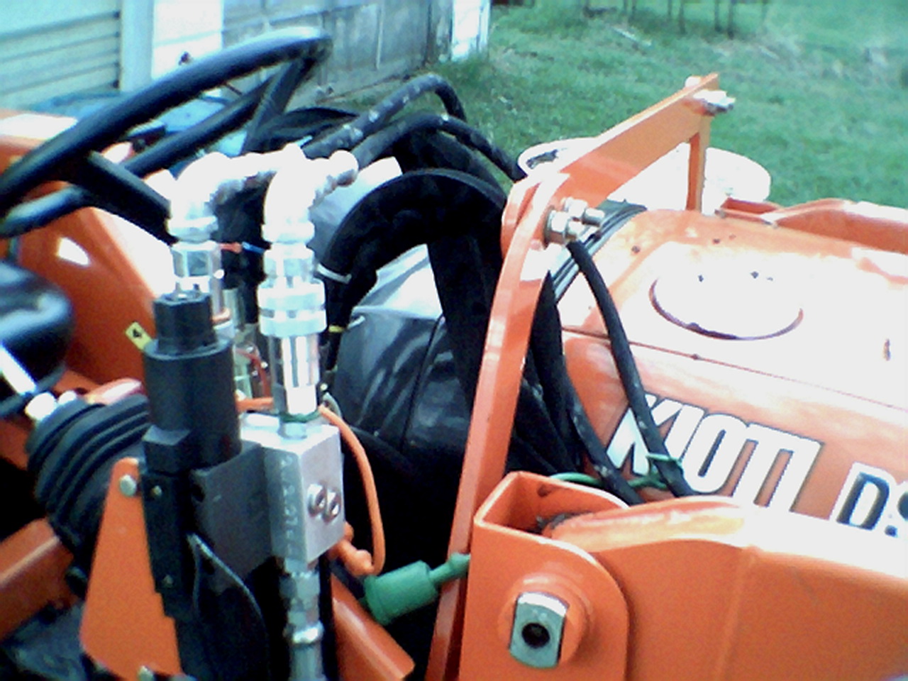 Even tho I pressure tested them to 3000 PSI, I still felt more comfortable with steel hyd fittings. I had access to a hydraulic test stand. Nelson Long has it attaching to the bracket for the bucket controls and repositioning some lines before running the hoses out to the front. I bought them thru Everything attachments. When I wired it up, I attached the wires so the rocker switch would open the grapple when I pressed fwd and closed when I when aft. I really liked the handle and switch setup..