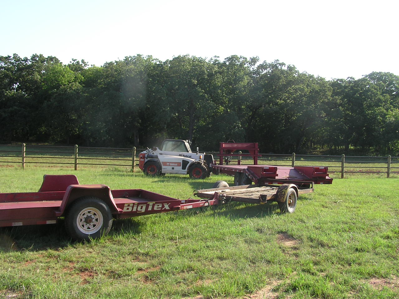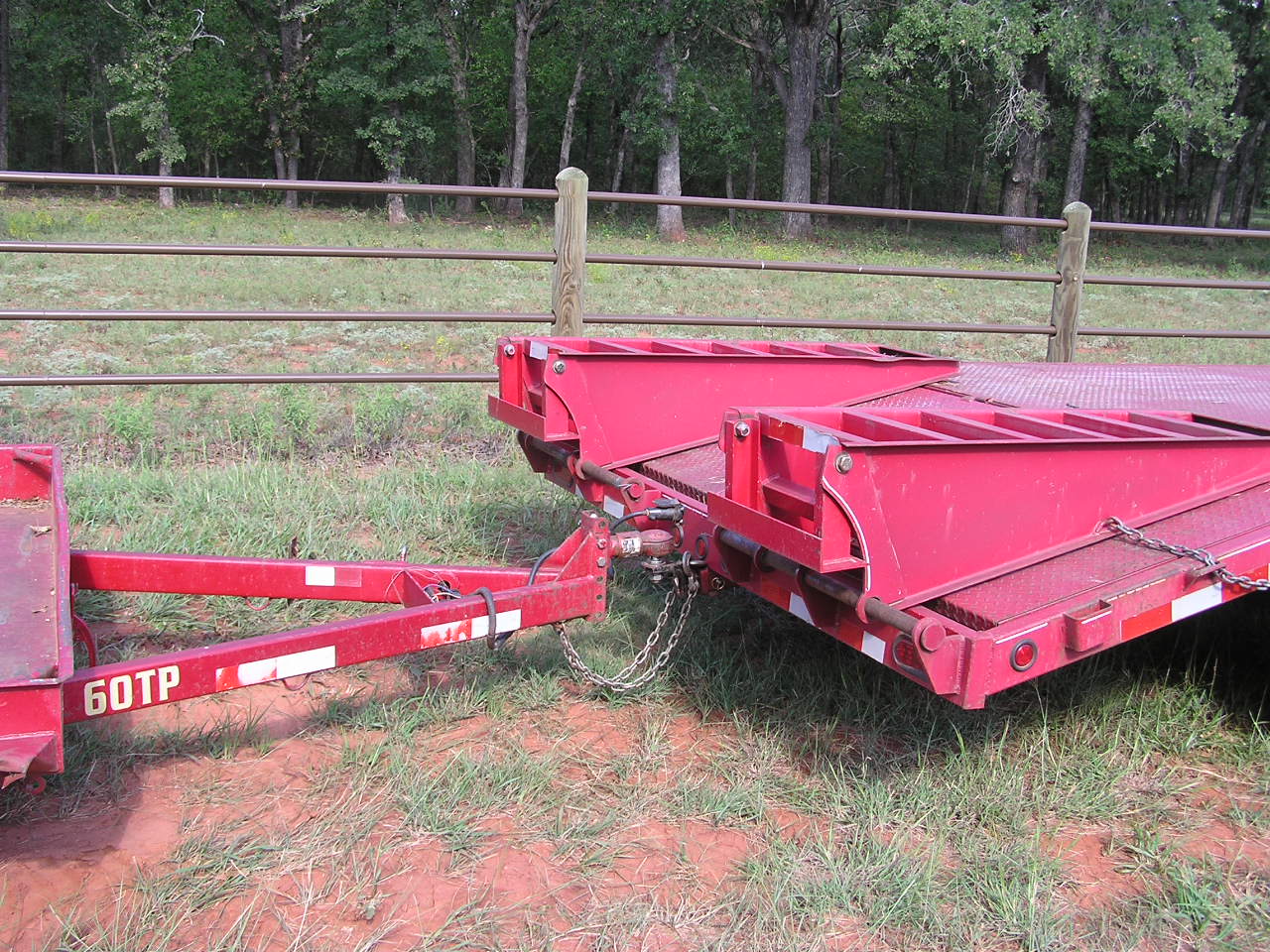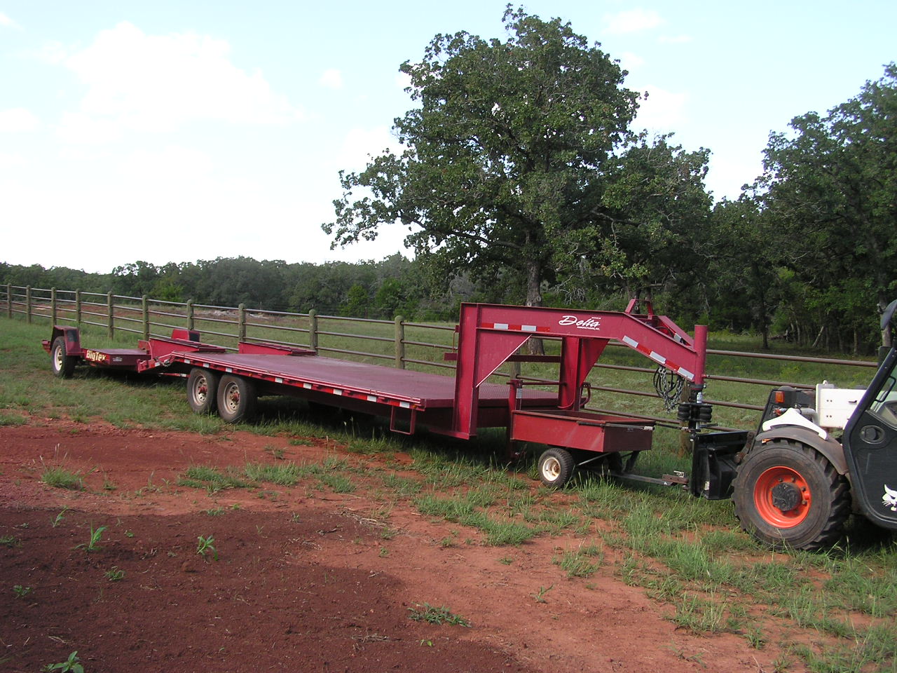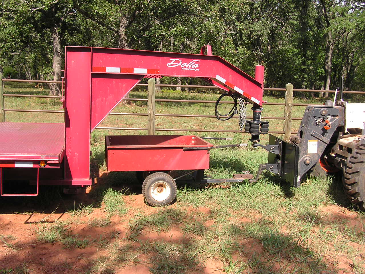 Raise the boom, curl down until I can see the ball under the Quick Attach, drive forward lining up the ball with the trailer hitch. Look at the top of the ball just under the hitch, in the last picture, below.