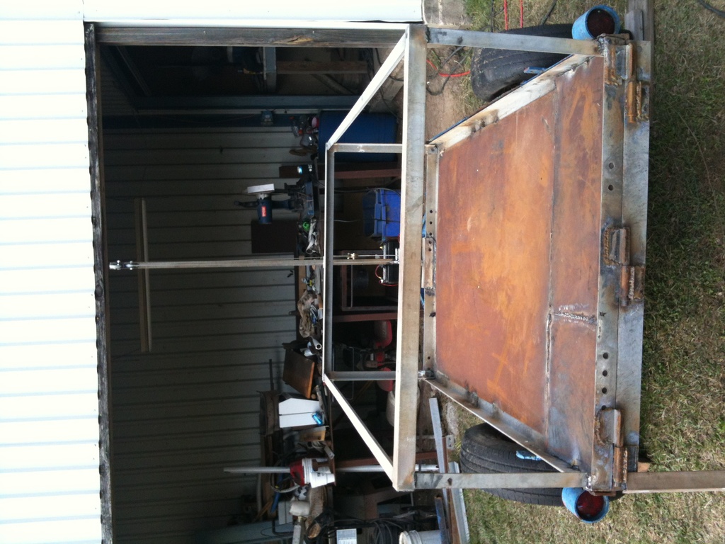 I mentioned to my dad that a small trailer that he built when I was a kid to move extra cargo on weekend trips or vacations could be brought back to life. The trailer has just been sitting and has not been much use to us. We came up with an idea and here is what we have so far.