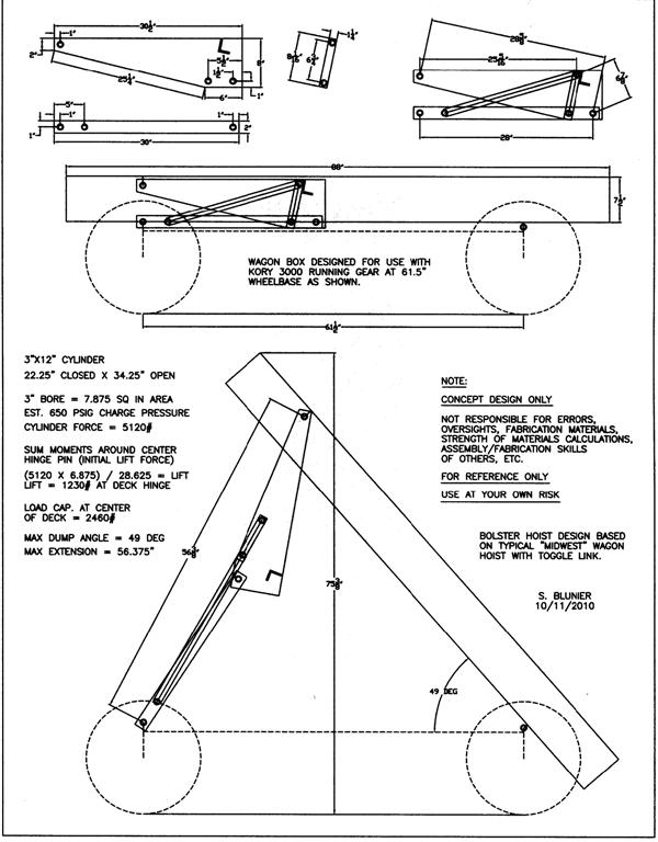 The lift angle did worry me, so I built a 3D model in SolidWorks, stretched the design out and used a 12" instead of 10" cylinder. Then positioned it on my trailer to give me something absurd like 60 degrees of tilt. I suspect if I built it to the plans exactly, it still would have been fine though.
