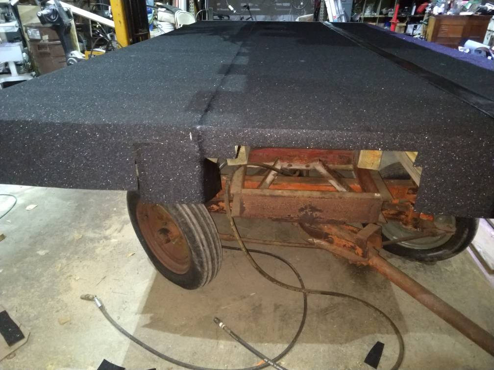 We have a 4 wheeled dump wagon that has a flat steel deck with a wooden deck under it. The wooden deck has seen better days, so it's coming off and is being rebuilt.