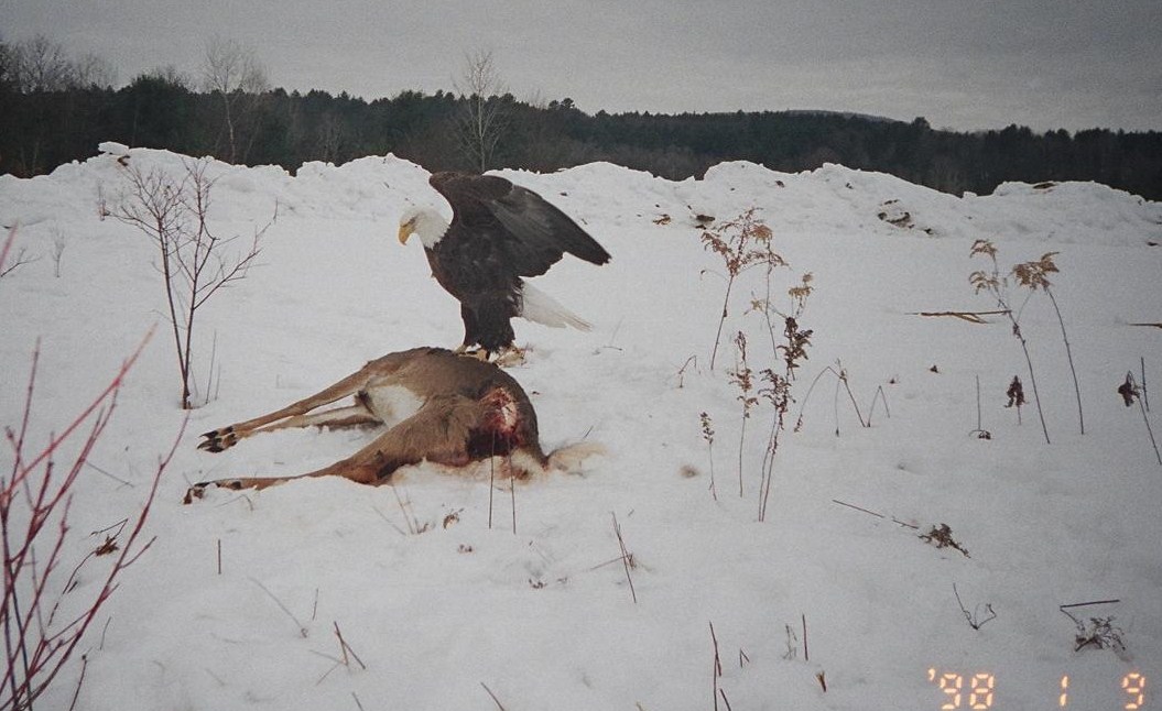 This time of year, it's pretty common to see the deer ribs sticking up in the bare fields near the roads. I'd guess any deer killed near a river might now get a bald visitor.