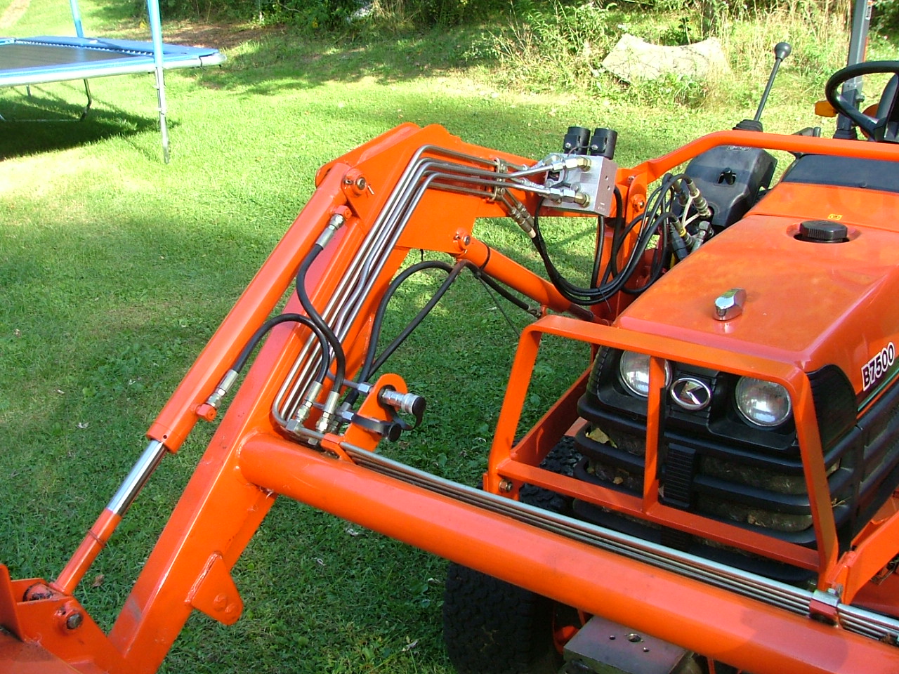 Here are a few pics of my installation, it shows my joystick mounted momentary switch, dashboard mounted toggle that is wired in parallel and the last ones of the valve mounted on the FEL and quick connects on the cross tube. If you need any info on how I wired or plumbed my setup just let me know.