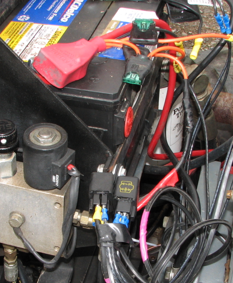 That picture is from 2007 and I have had no problems. 12V relays bolted to the battery box and blade fuse holders on some of the wires.