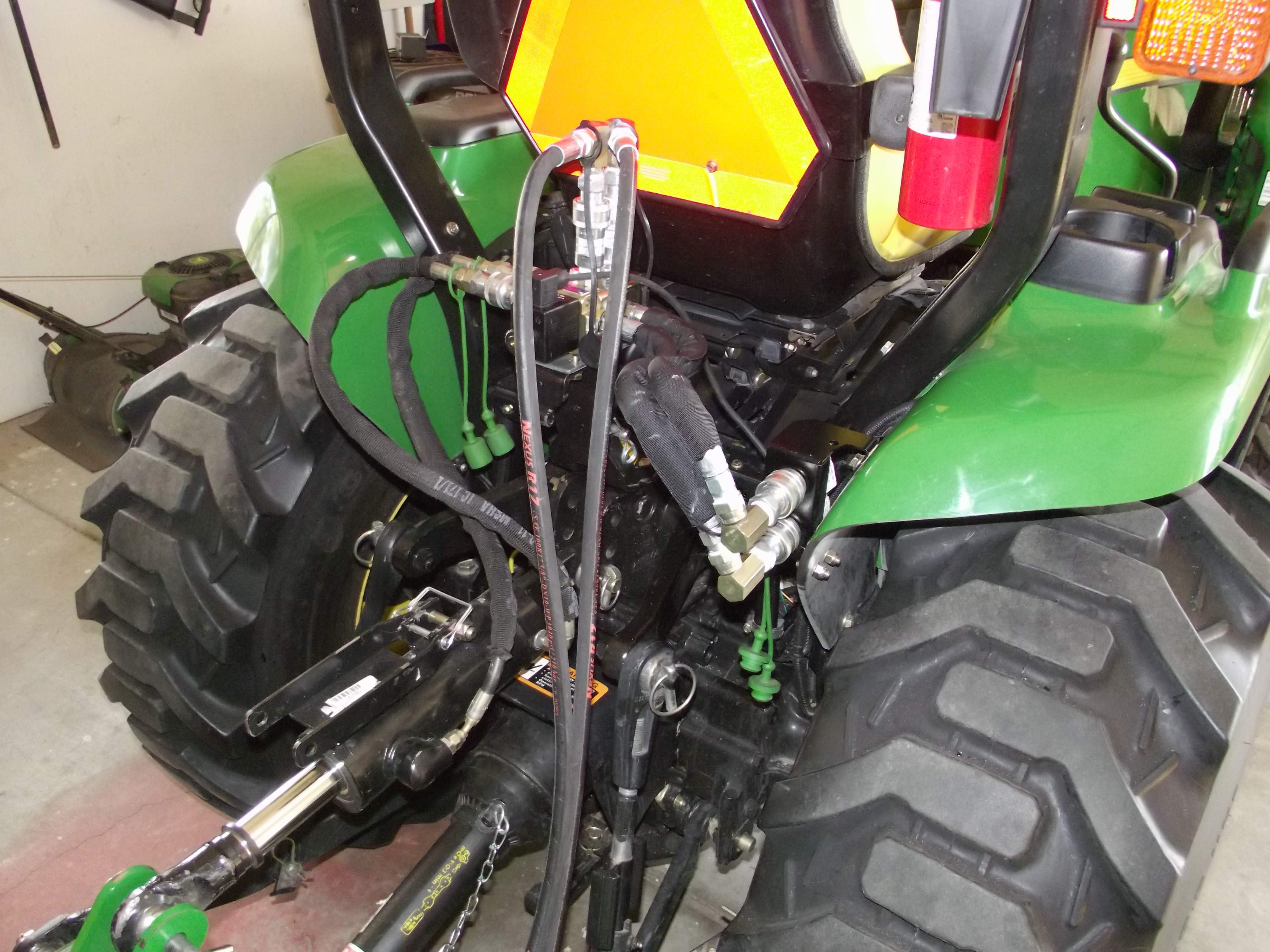 Well, its not pretty but it works! I installed an electric selector valve at the rear of the tractor to have 2 working hydraulic circuits. Right now, I have the hydraulic top link and snow chute rotation. Maybe if I am good Santa will bring