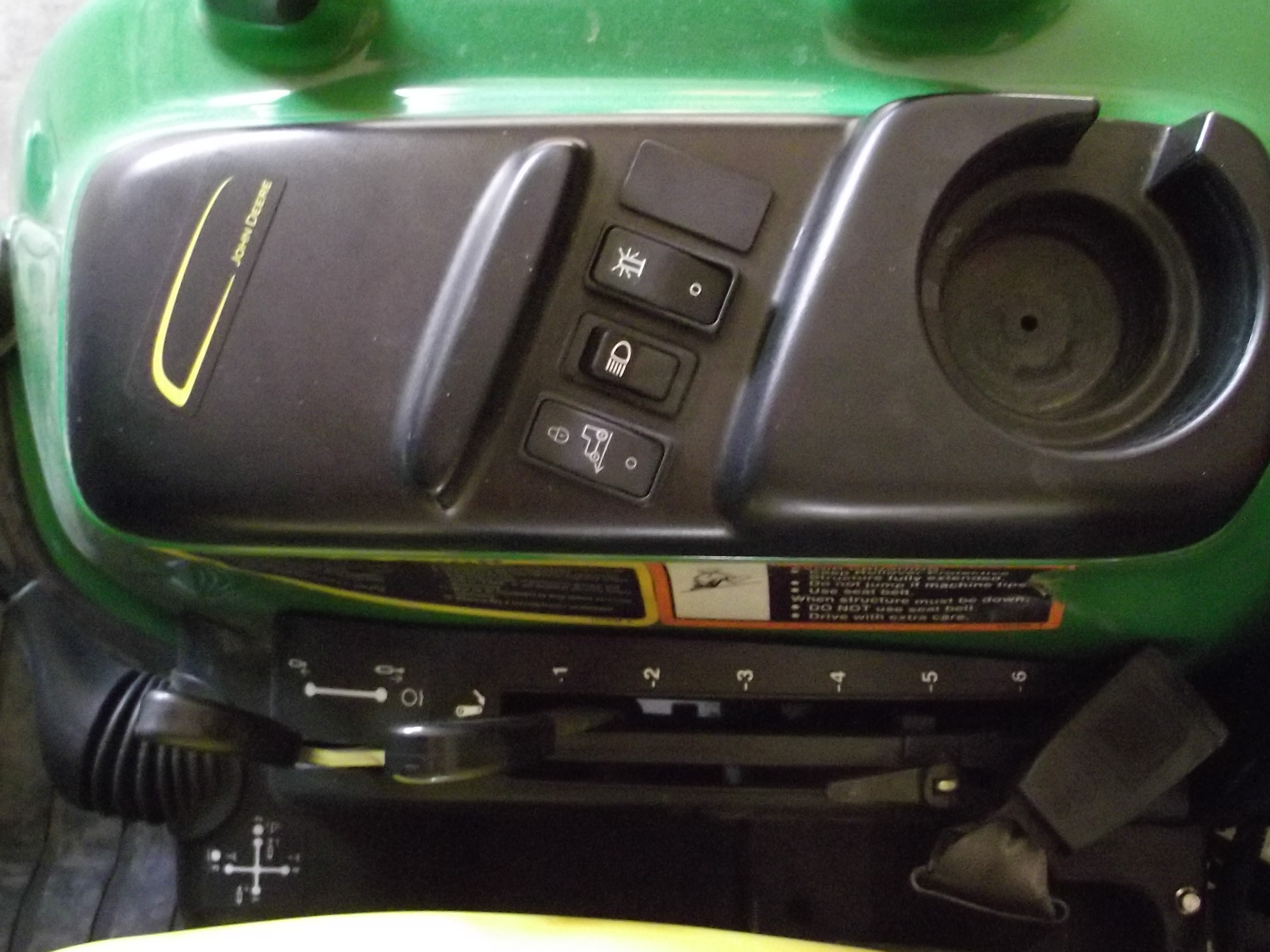 The valve was a fairly easy install. The valve and fittings came from Surplus Center, and the electric switch is a JD strobe light switch. The switch fit in the console perfectly but I was unable to figure out how to get it to light up when I have the switch on. Anyone have a pin out for the switch? I am fairly certain it came from a cabbed tractor and was the only switch the dealer had in stock.