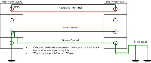 podagrower - we apparently have 2 options in the code here... option 1 is my way - a 3 wire bundle that's 2 hots and a neutral - then have 2 grounding rods... option 2 is a 4 wire pull (more money) - that would be 2 hots a neutral and a ground... then drive 1 grounding rod out there... For my money 2 grounding rods is a lot cheaper.