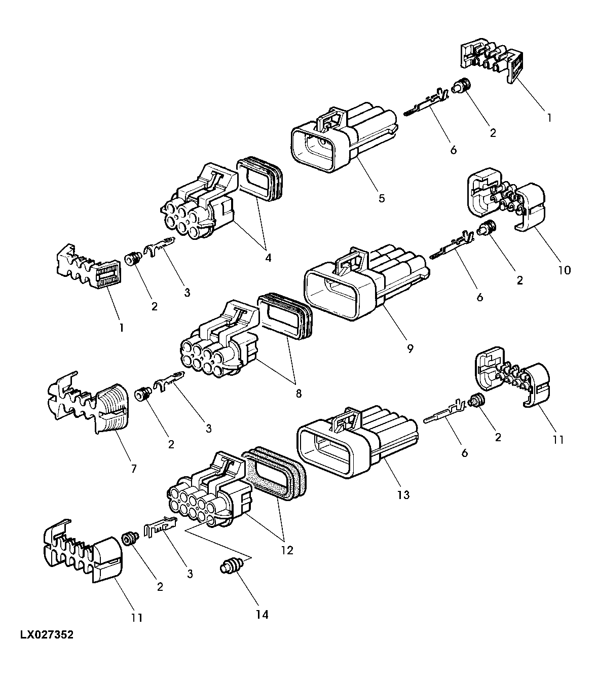 My Kawasaki Mule uses Tyco-Amp waterproof connectors. Here's a link to their catalog.