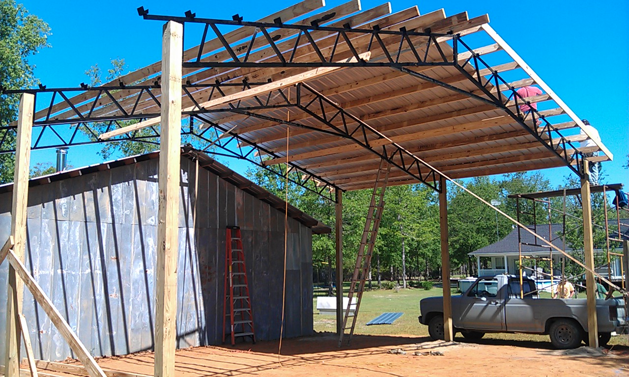 You musta got a good deal on wood, typically verticals are only used on each side of the windows & doors, not totally framed. Just the horizontal pieces to hold the tin.