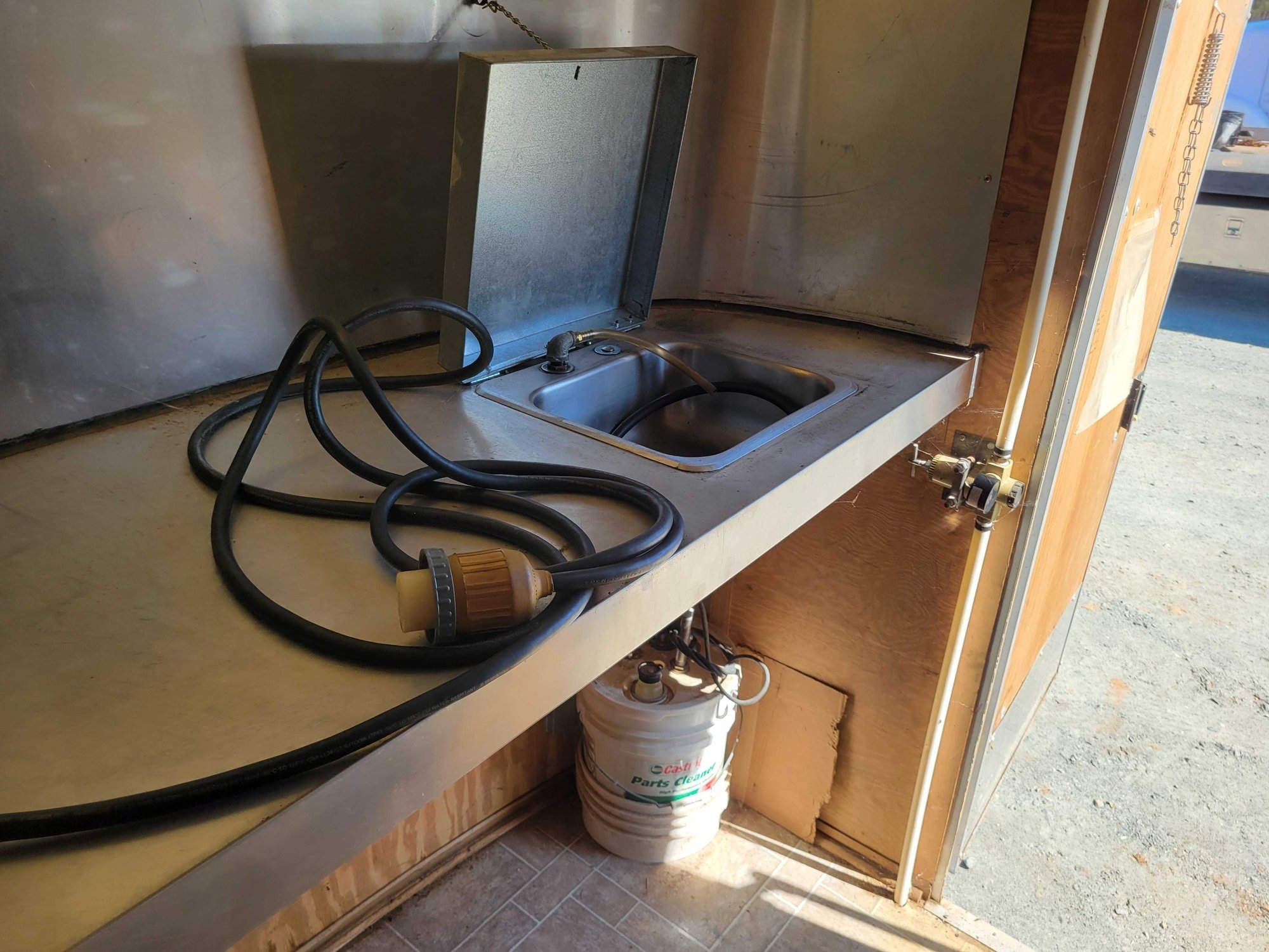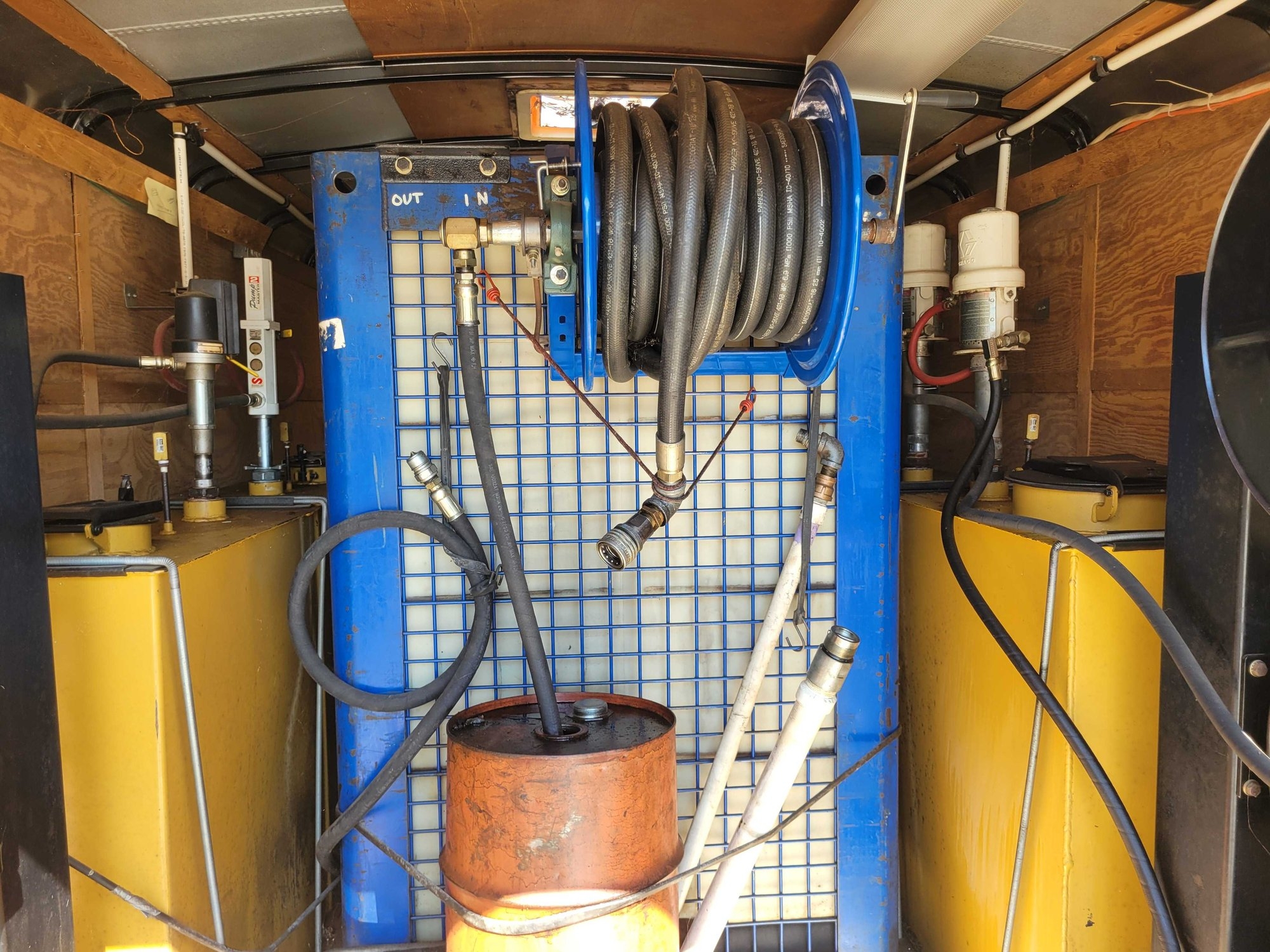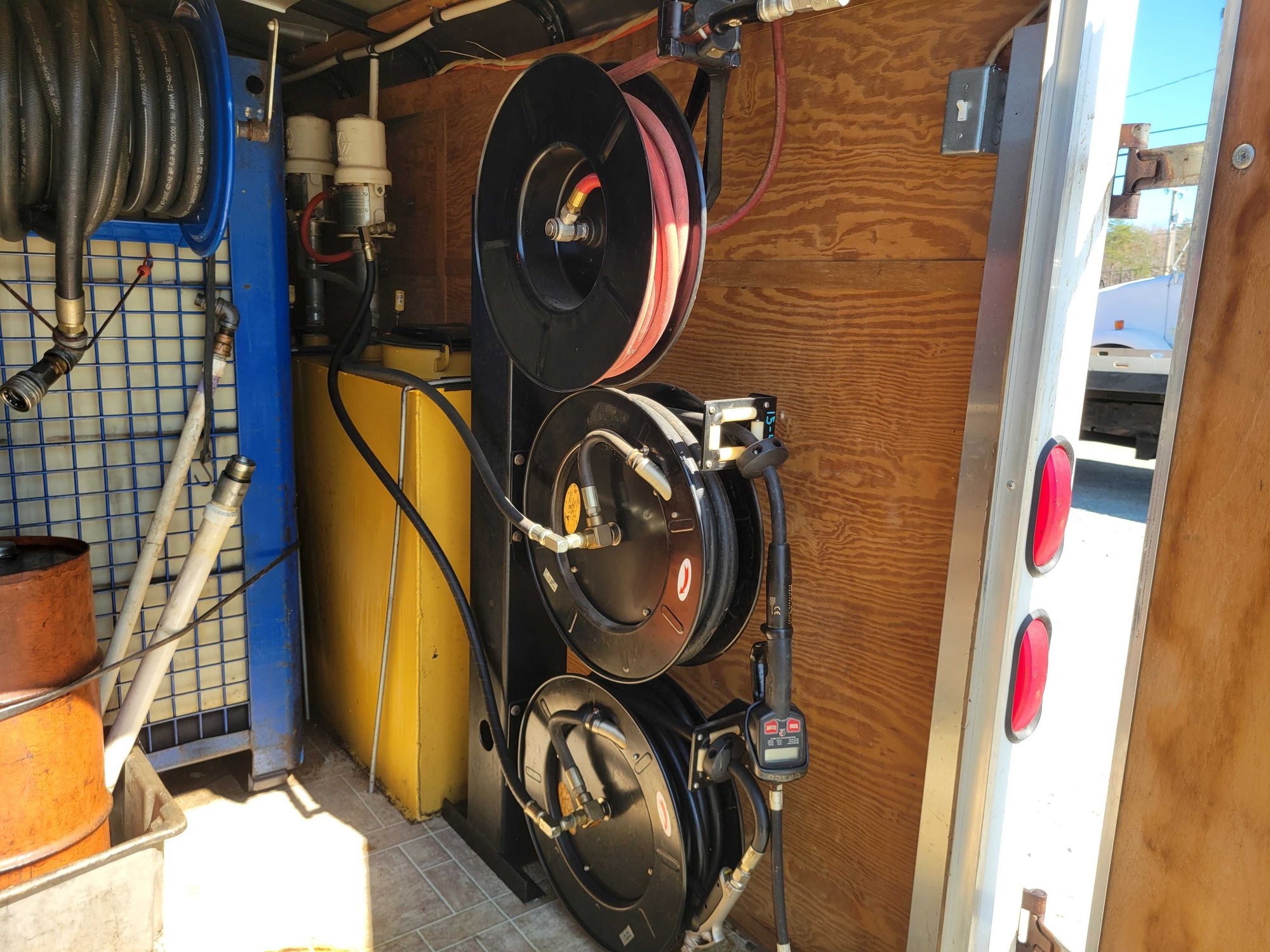 Enclosed Trailer with Lube System, 4 Product tanks, 1 Waste oil tank, 6 Hose reels, Sink, Work Table