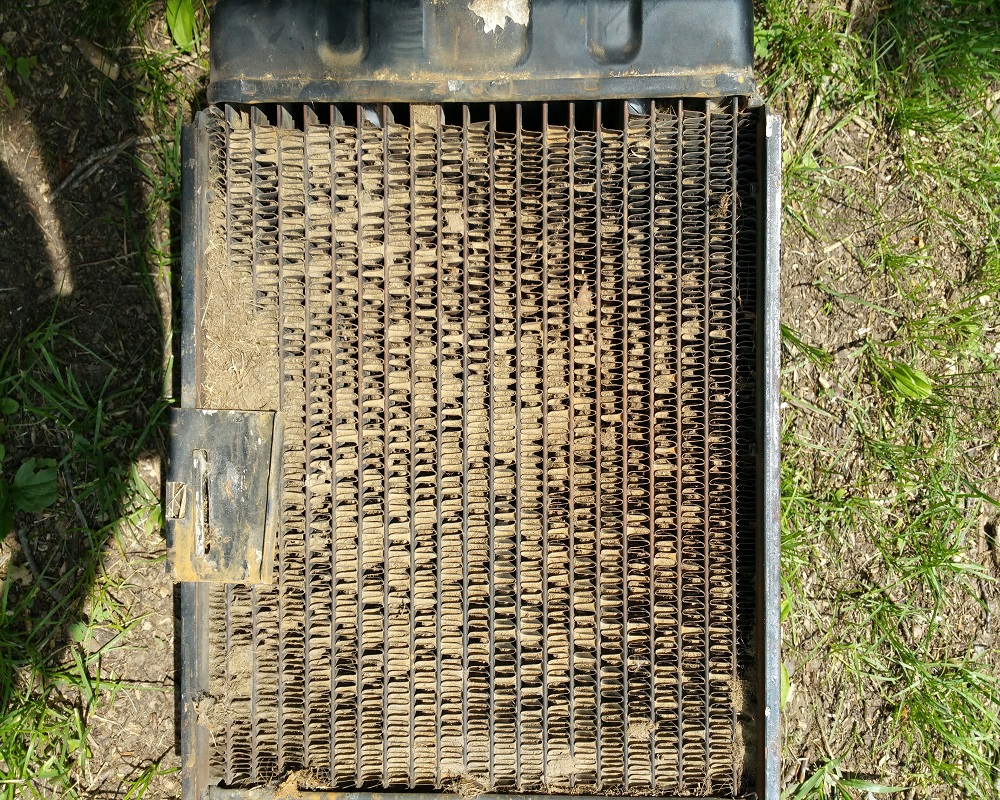 That rad looks badly plugged and almost like Mud in between some of the cooling fins. Can't see how it could do a decent job of cooling the engine.