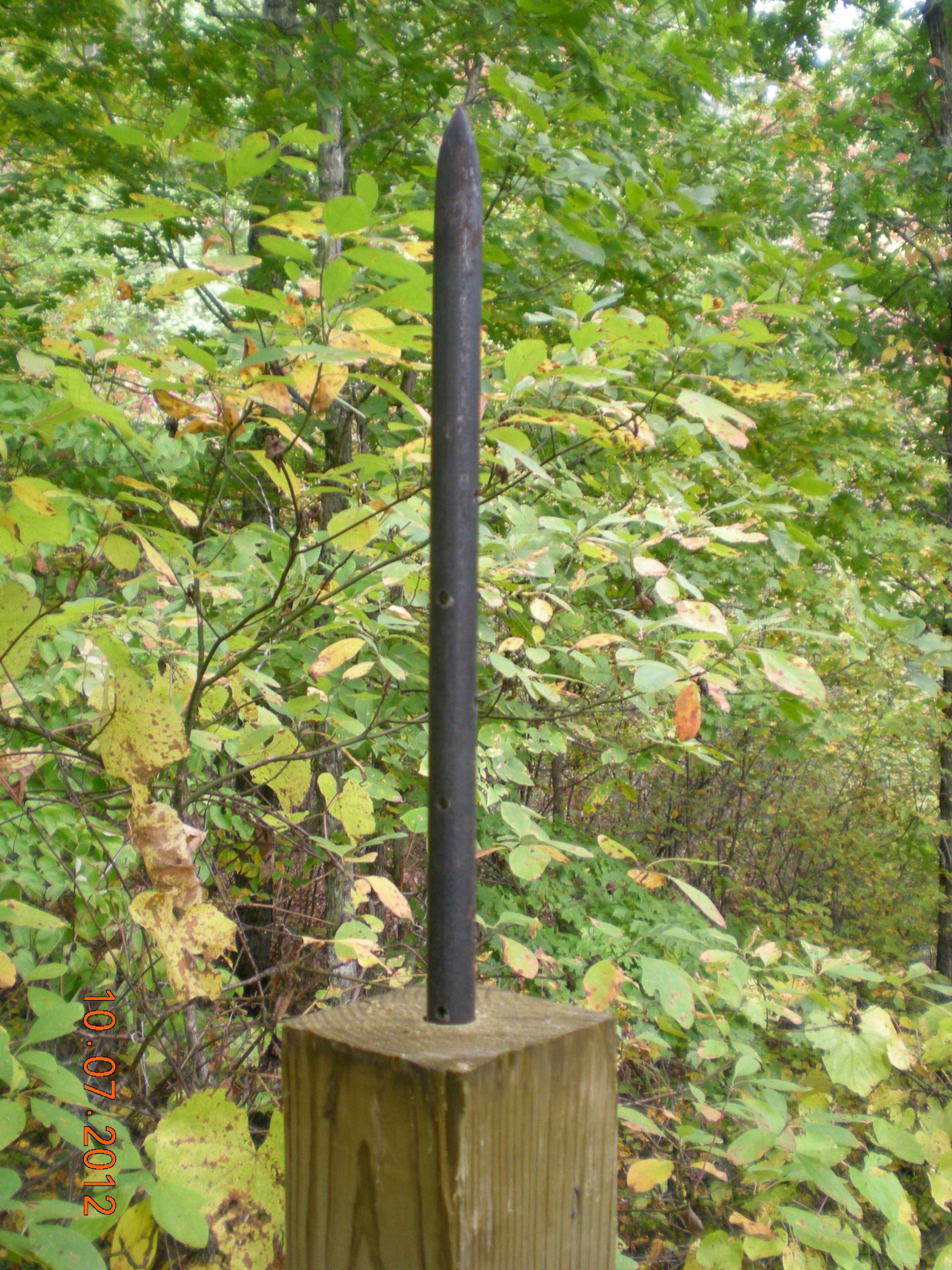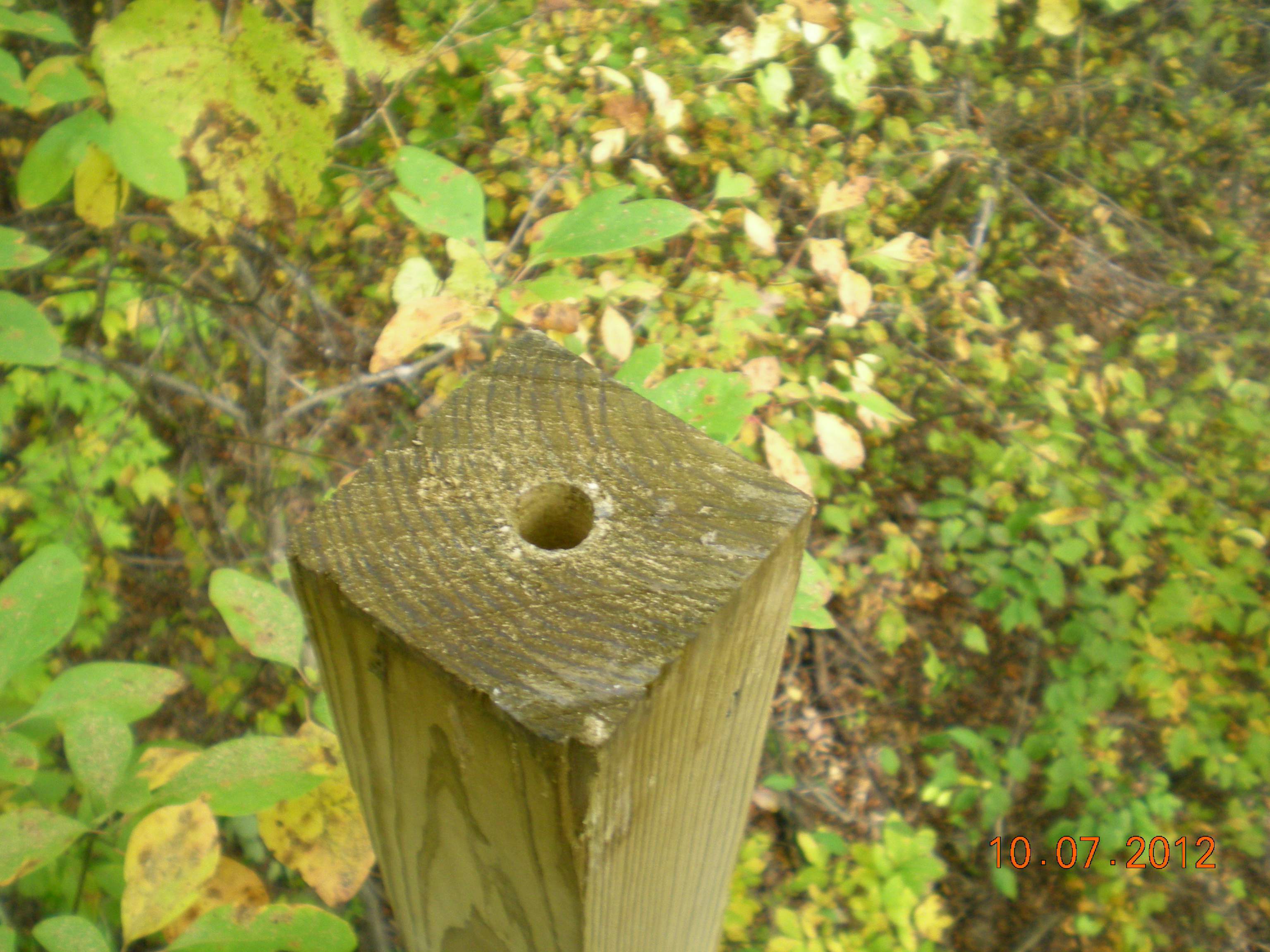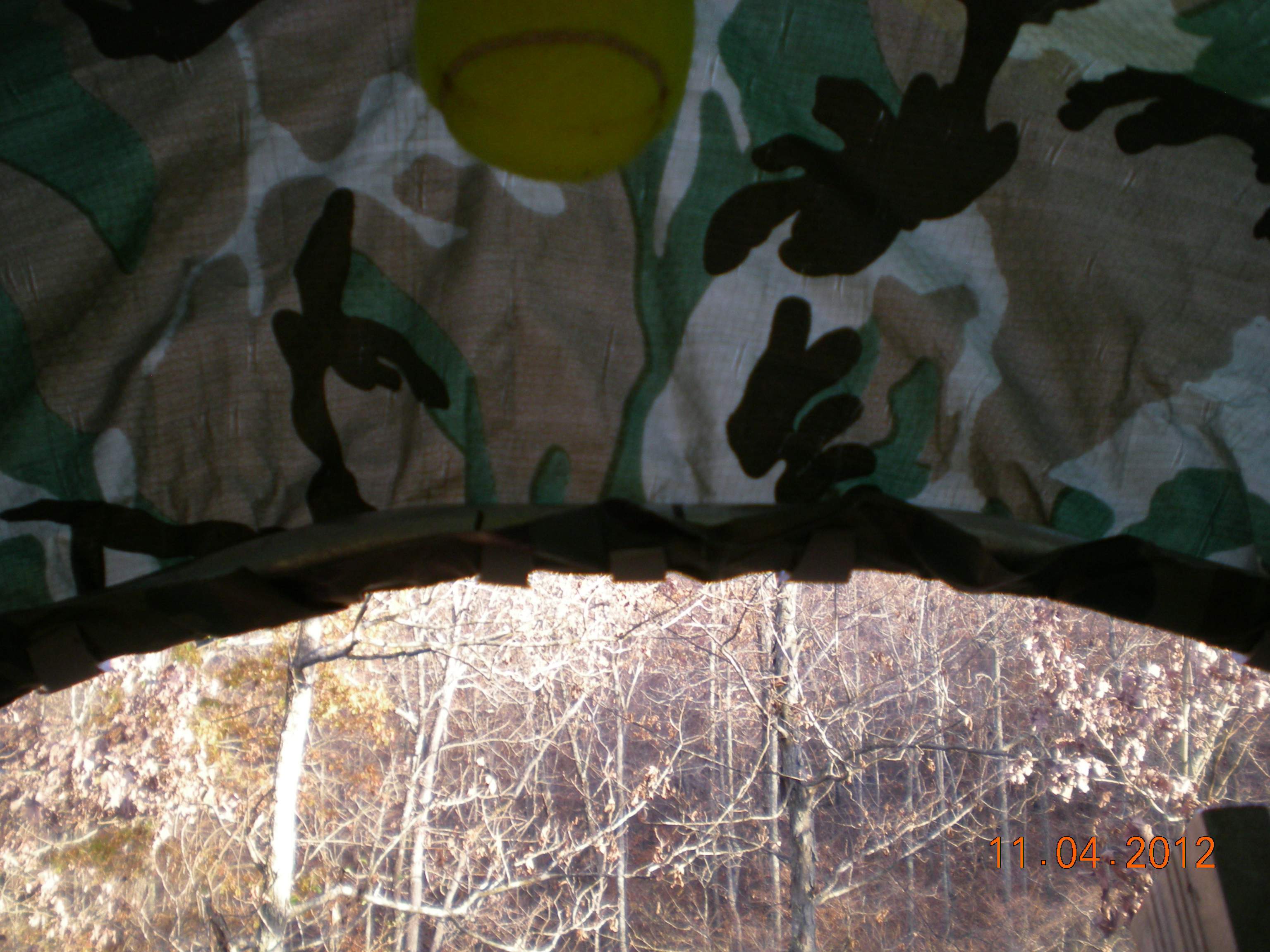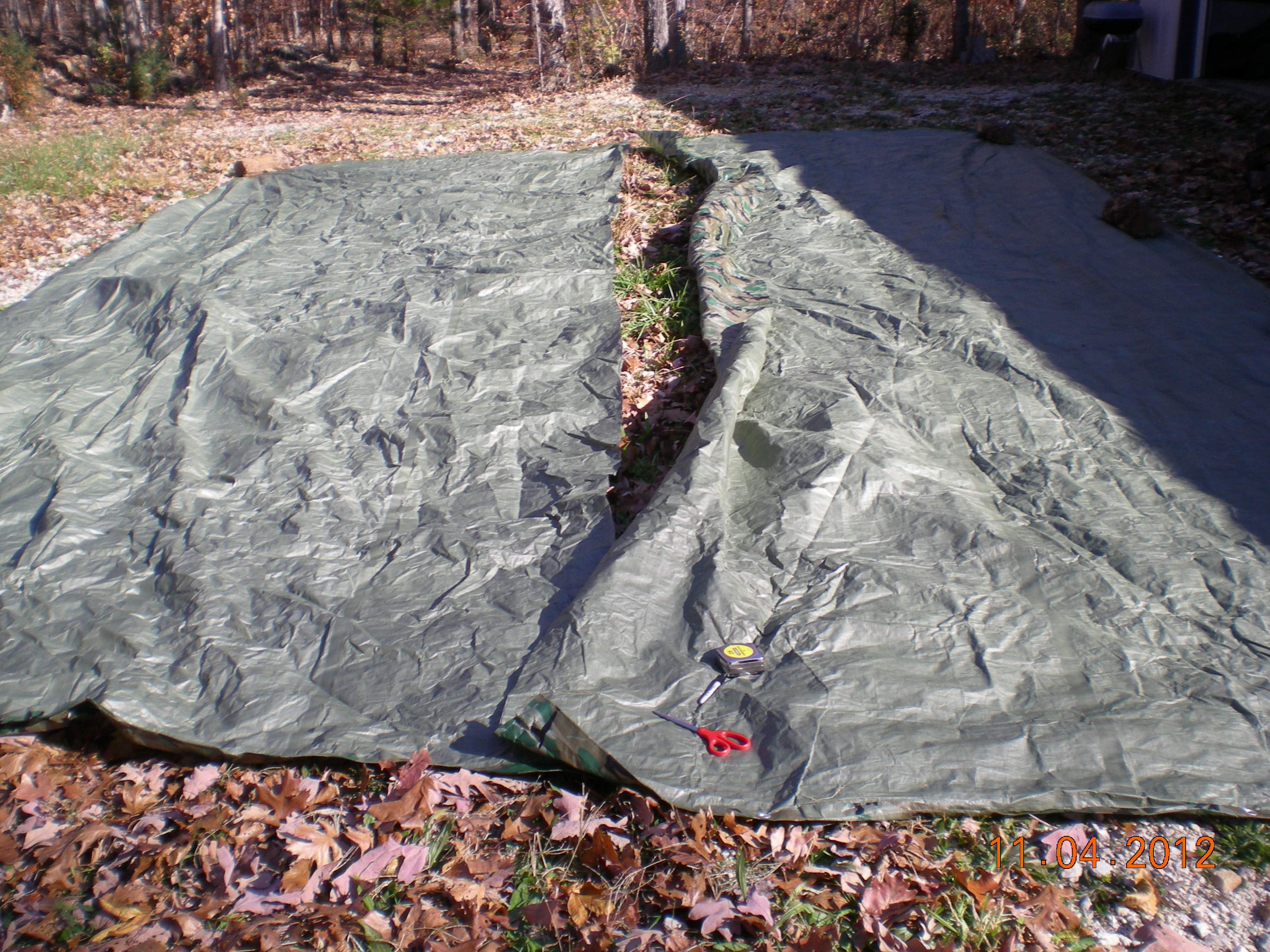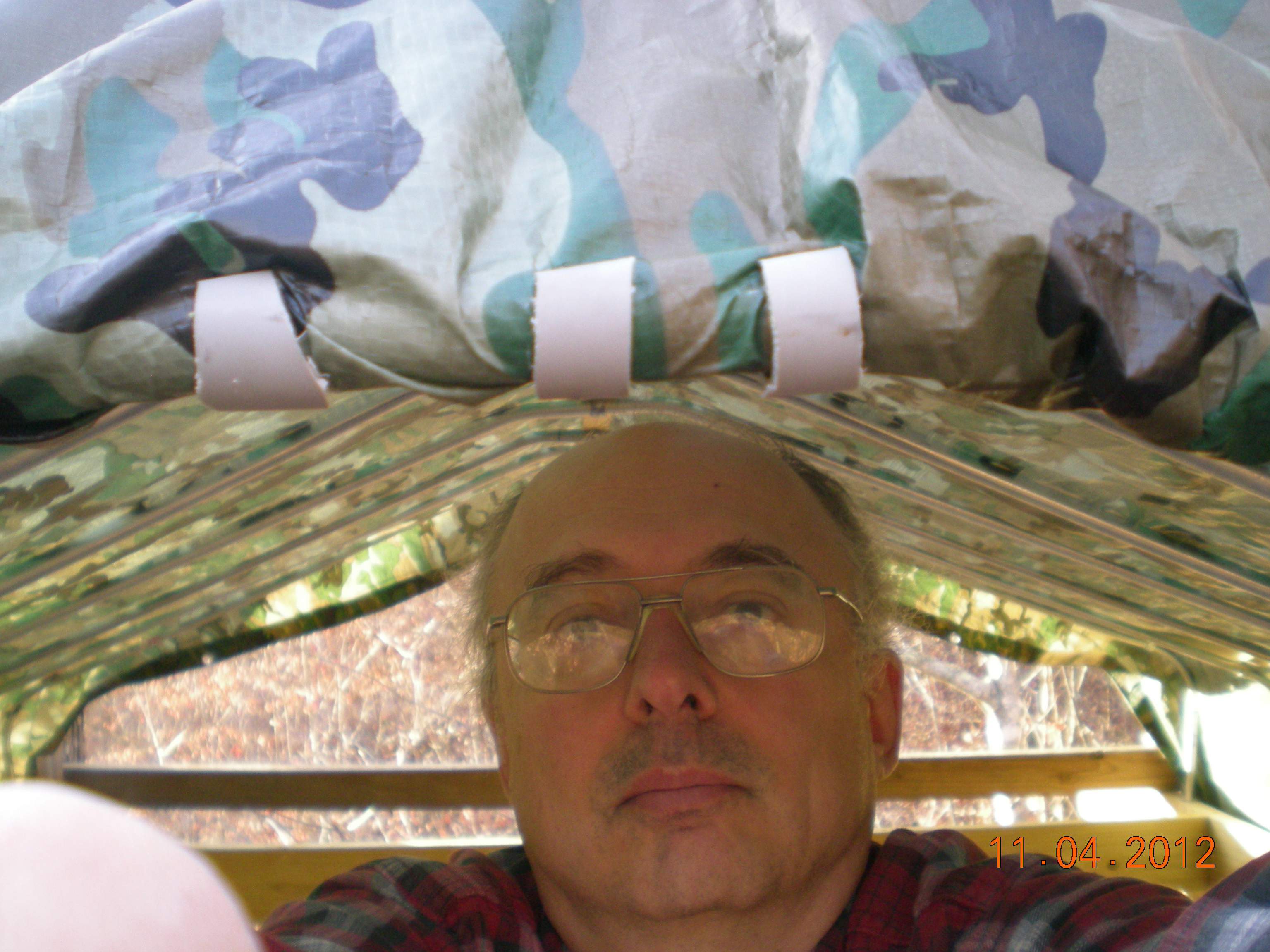 There is an 8x8 ft deck about 10 feet above ground, supported by two trees and two 4x4 in legs, on a hillside above a meadow in the middle of my property. In the past I cobbled a hunting blind atop it out of ropes and a tarp, but it really needs a roof and sides and a gunrest and a shooting window (and a carpet and some comfy chairs and a coffee maker and a flatscreen TV and ...