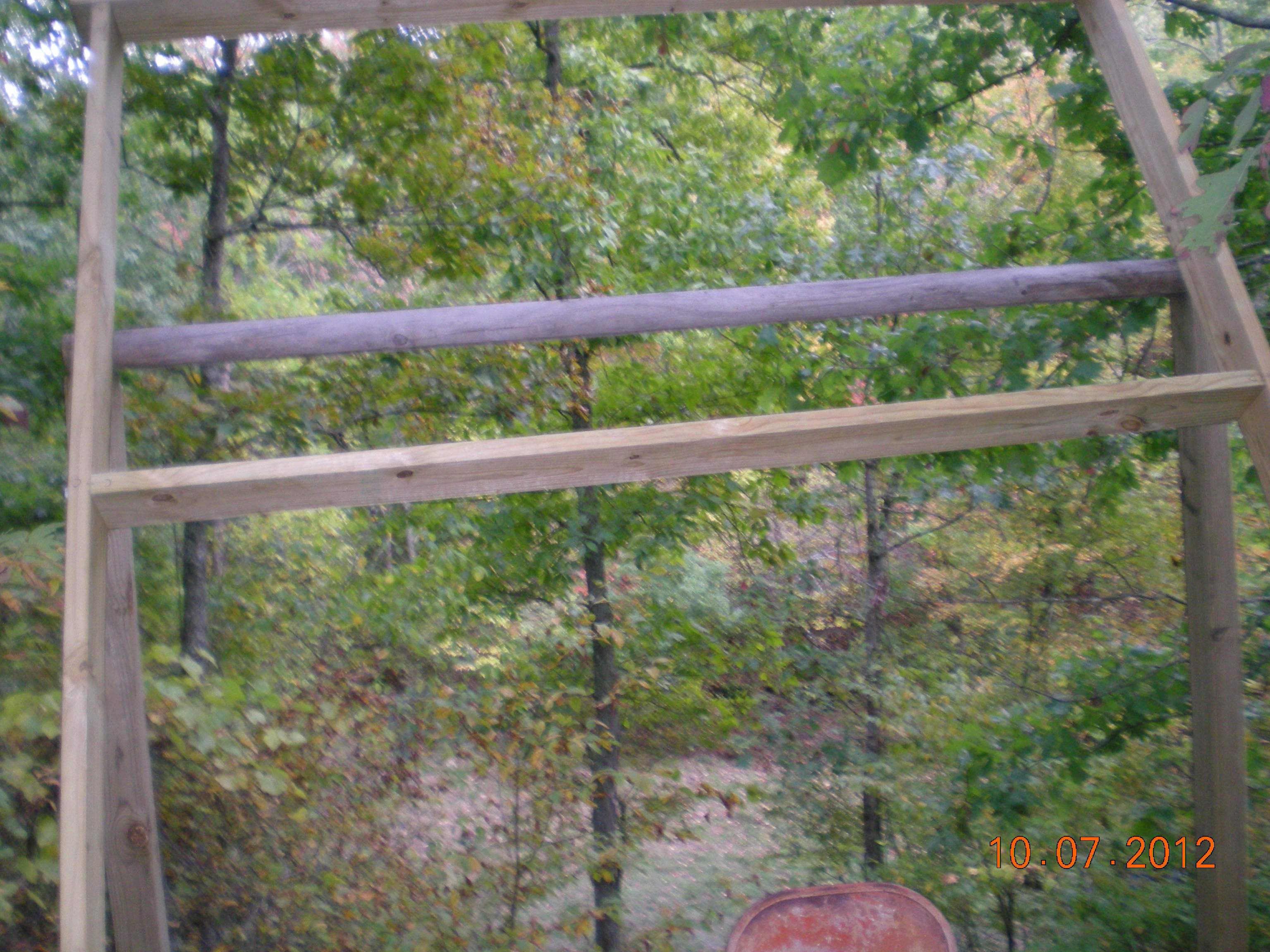The posts rise 6'2" above the platform which is high enough for me, but I may add a header before putting up the roof to make room for my taller friends.
