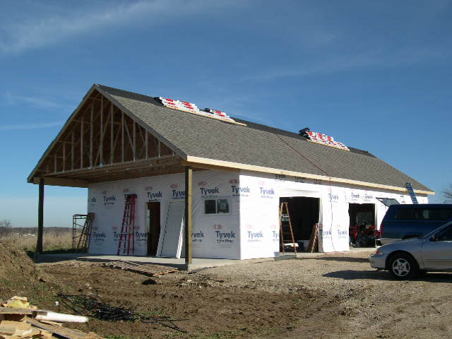Inside dimensions are 28' x 60' with a 8' overhang on the west gable end.