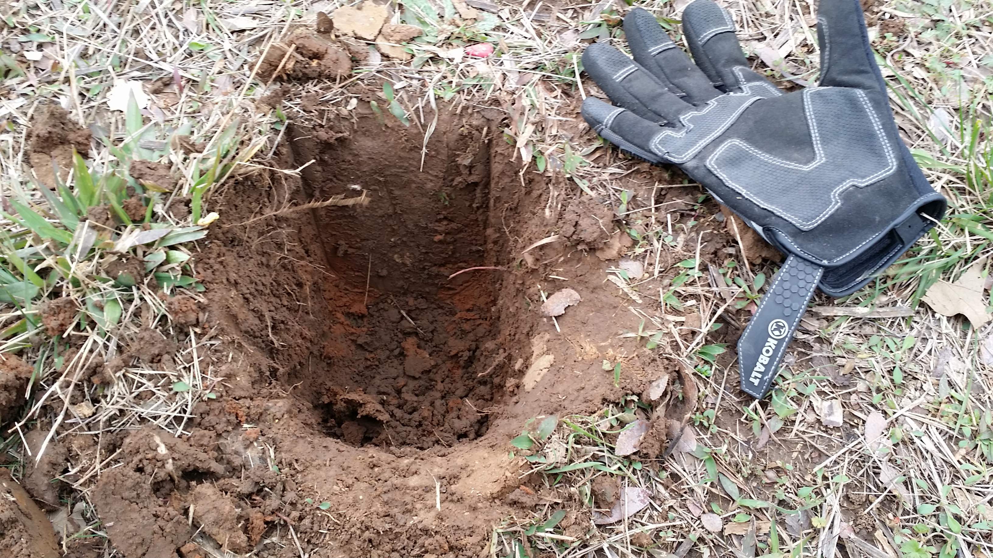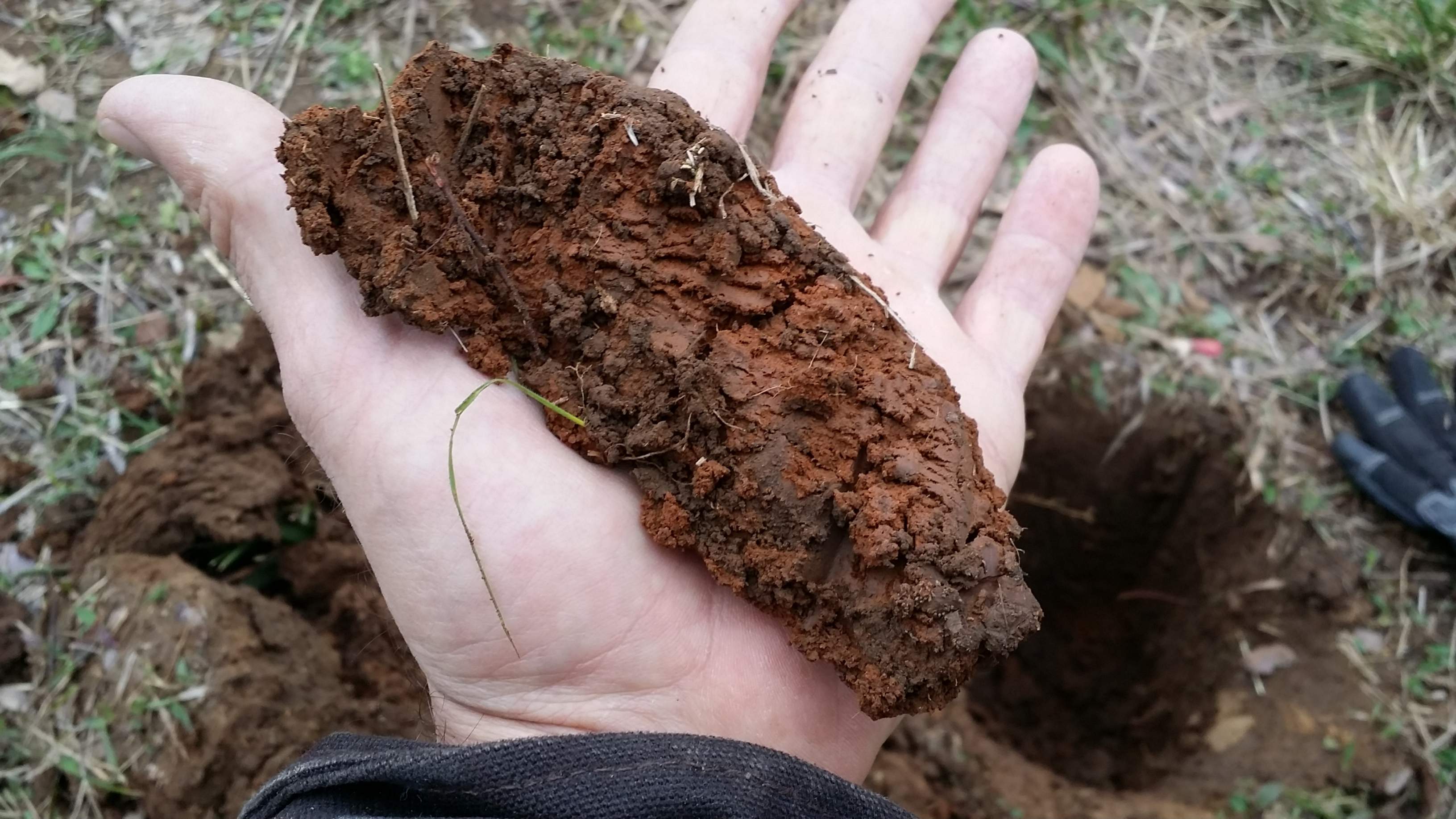Here is one of the test holes I dug and a chunk of the clay found at 8".