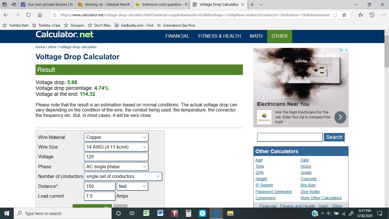 130 foot run with 14 gauge COPPER wire, 120 volts @ 7.5 amps would result in almost 5 volts drop. If you are feeding it with an ACTUAL 120 volts, you are probably fine. your drill should run on 115 V just fine. If you are feeding it with 110v, the drop could be a problem. Pay attention if your drill start running hot. Stop and let it cool down. Wait a bit between holes to let the motor cool. If your extension cord is aluminum (or CCA - Copper Clad Aluminum), the voltage drop will be even more.