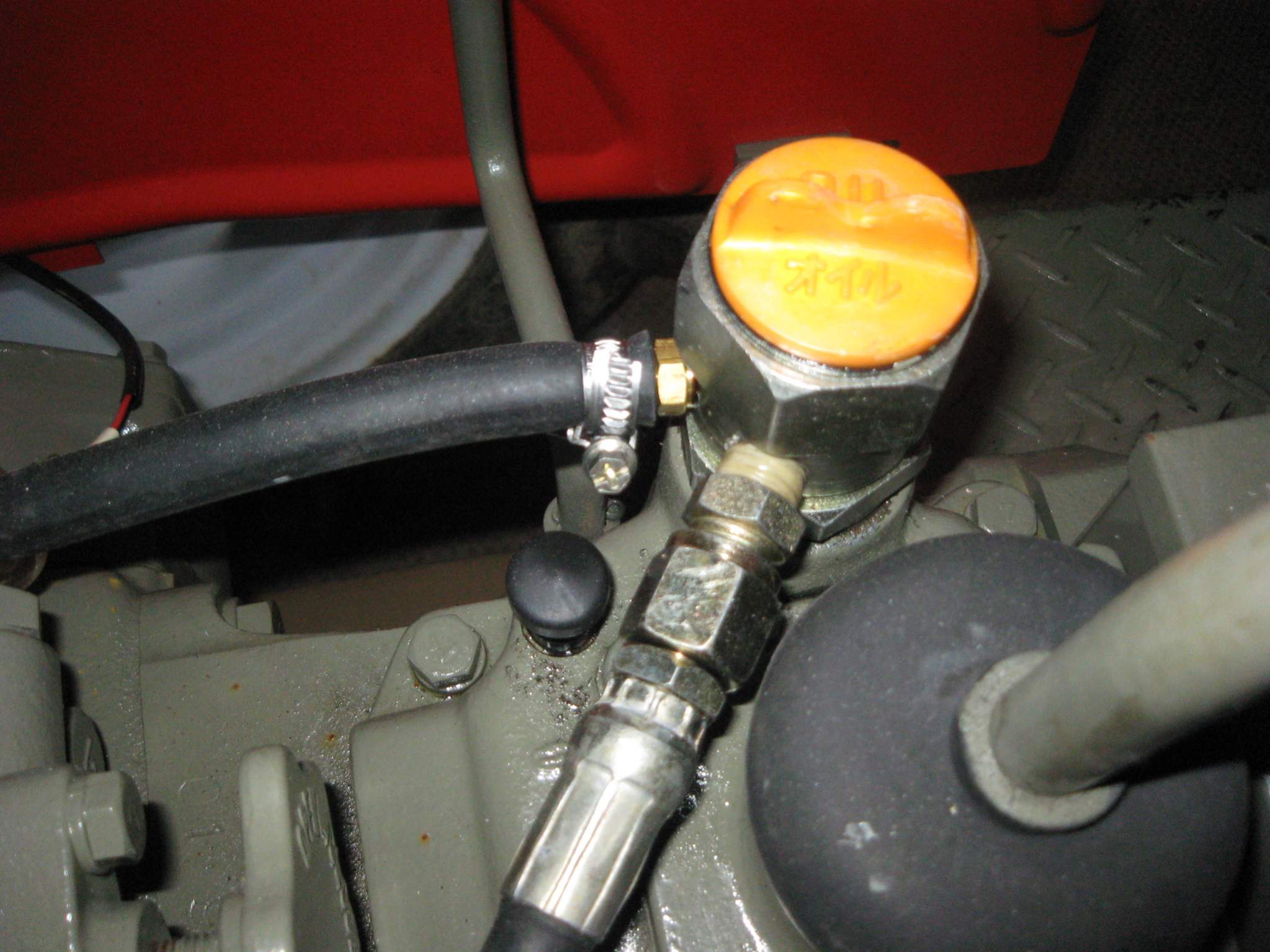 My 1500 spits oil vapour out from around the gear shifter boot, the vent on top of the diff housing is clear so i thought i would try this. it is only an oil filter but they are cheap, i have seen them used on hydraulic tanks as breathers. the boot is soft and has the clip on it to retain it in place so i dont know why it does it but anyway, we will see if this works. i used a worm clamp to secure it to the mudguard bracket.