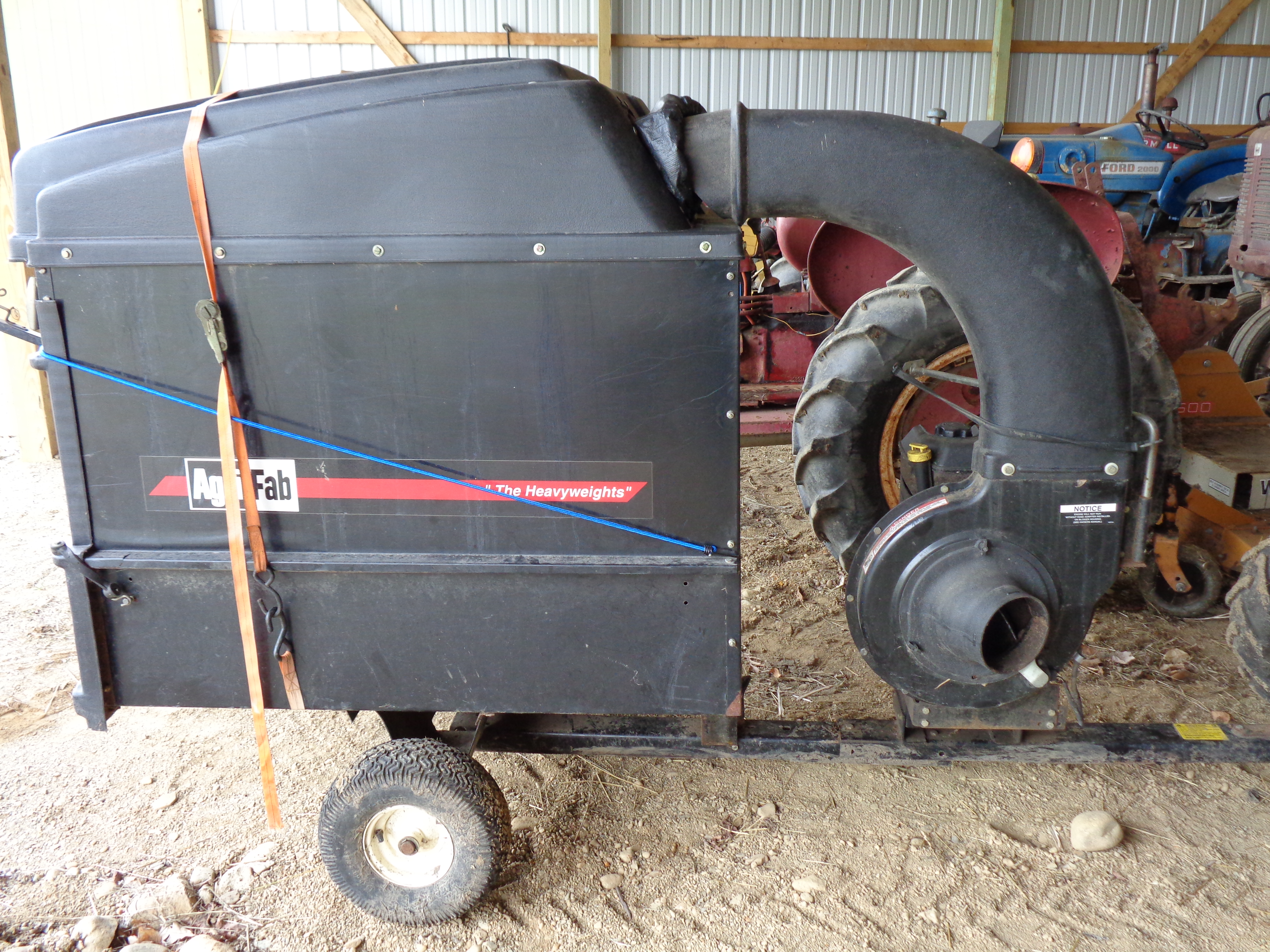 I have the ordinary large (48”) Agri Fab yard sweeper. I grind up the leaves and simultaneously pull the leaf sweeper. Works ok, but homeowners + at best build quality.