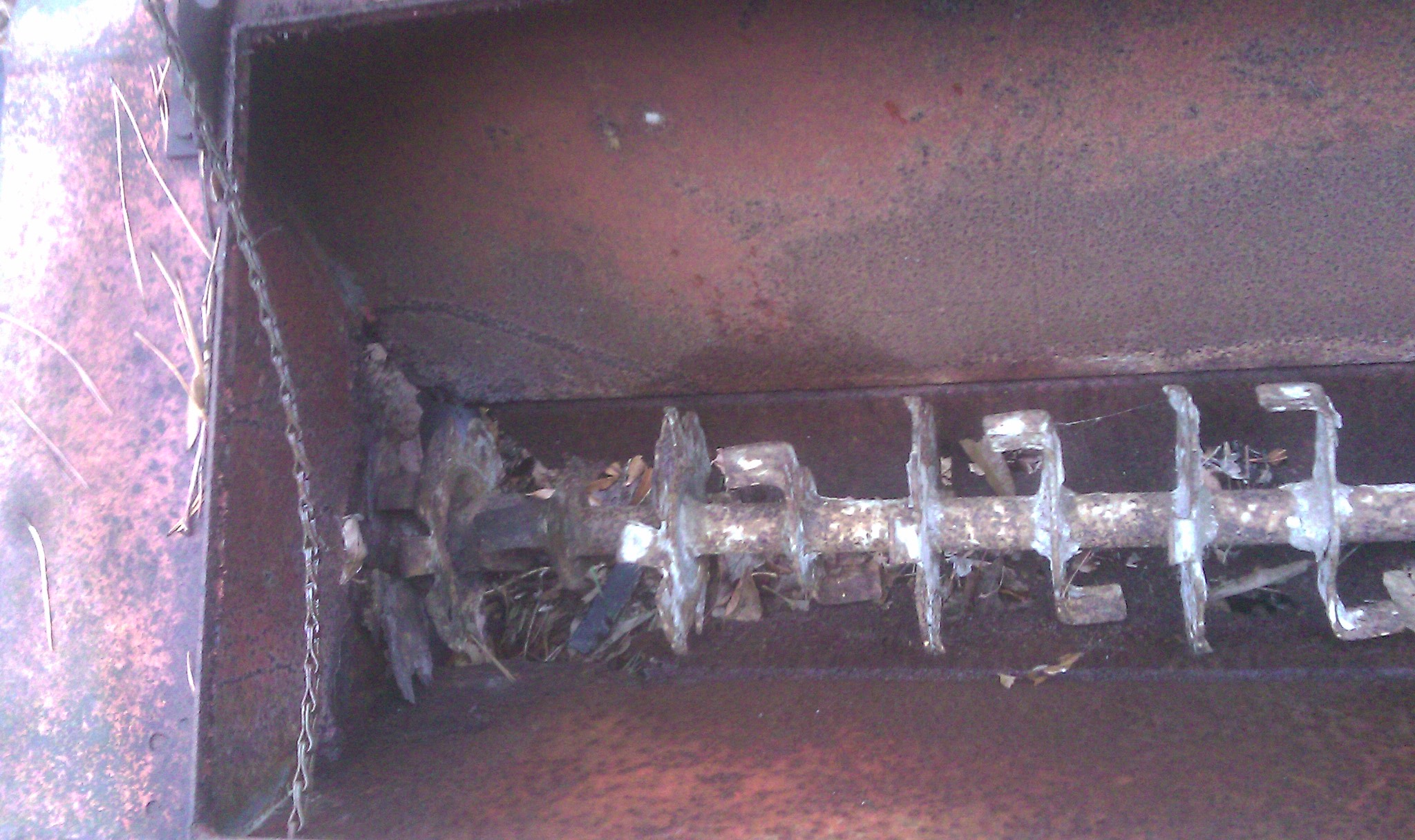 Thought I would show a pic of the EZ Flow I cut down to six feet wide. Not too hard of a project. The last pic shows the two foot sections removed from either side. I left the center section in tact....as that is where the beater bearings are located and it holds the mechanism for the shut off plates.