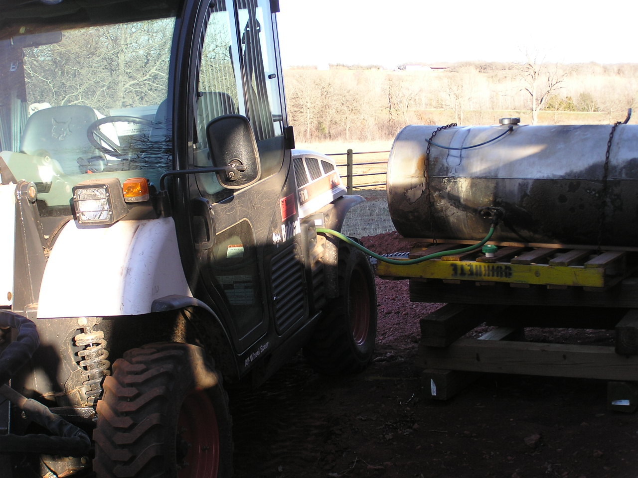 I raised the tank so now I can park the Versahandler or the Dumper next to the saddle tank and let gravity go to work filling them up.