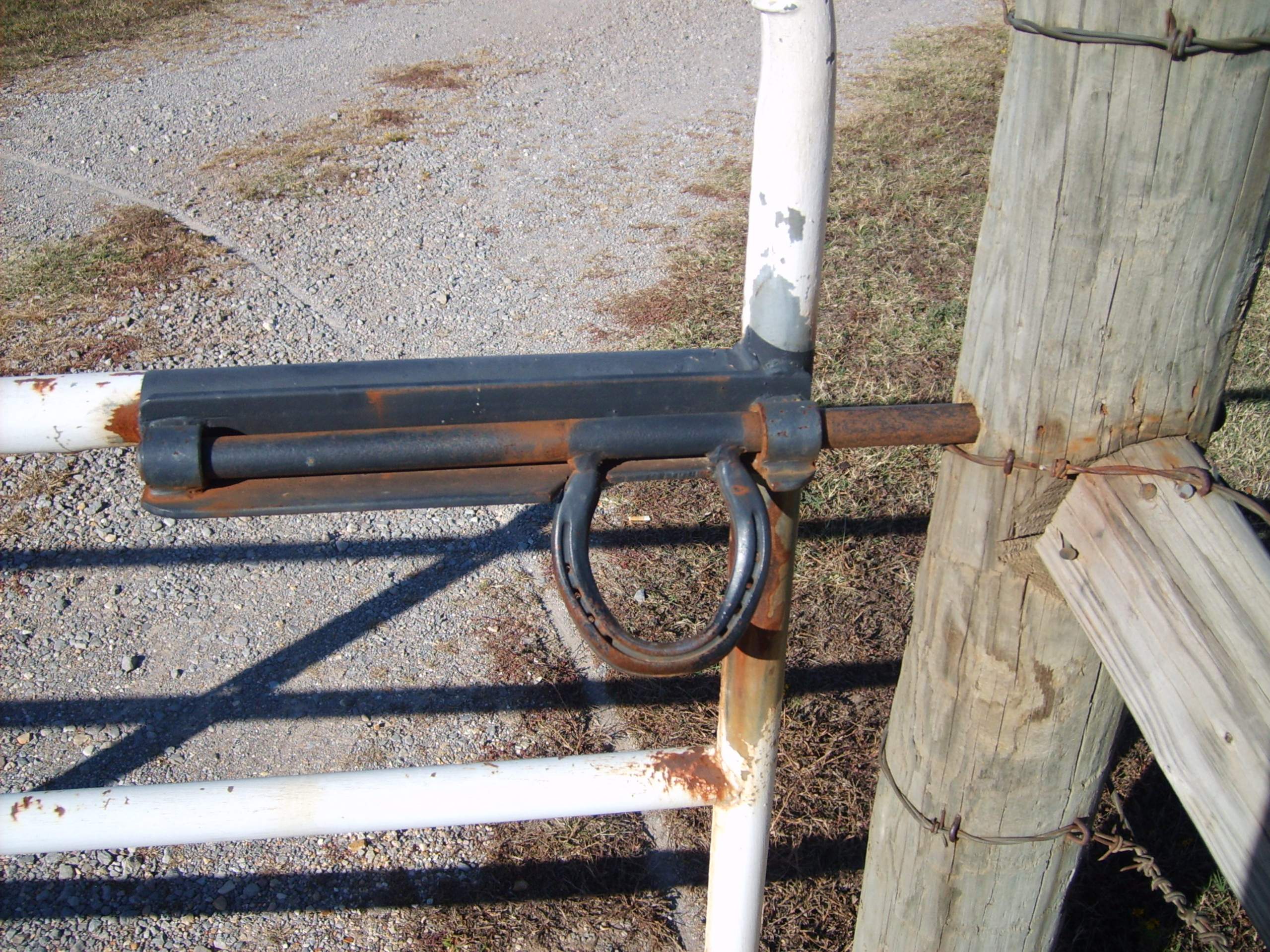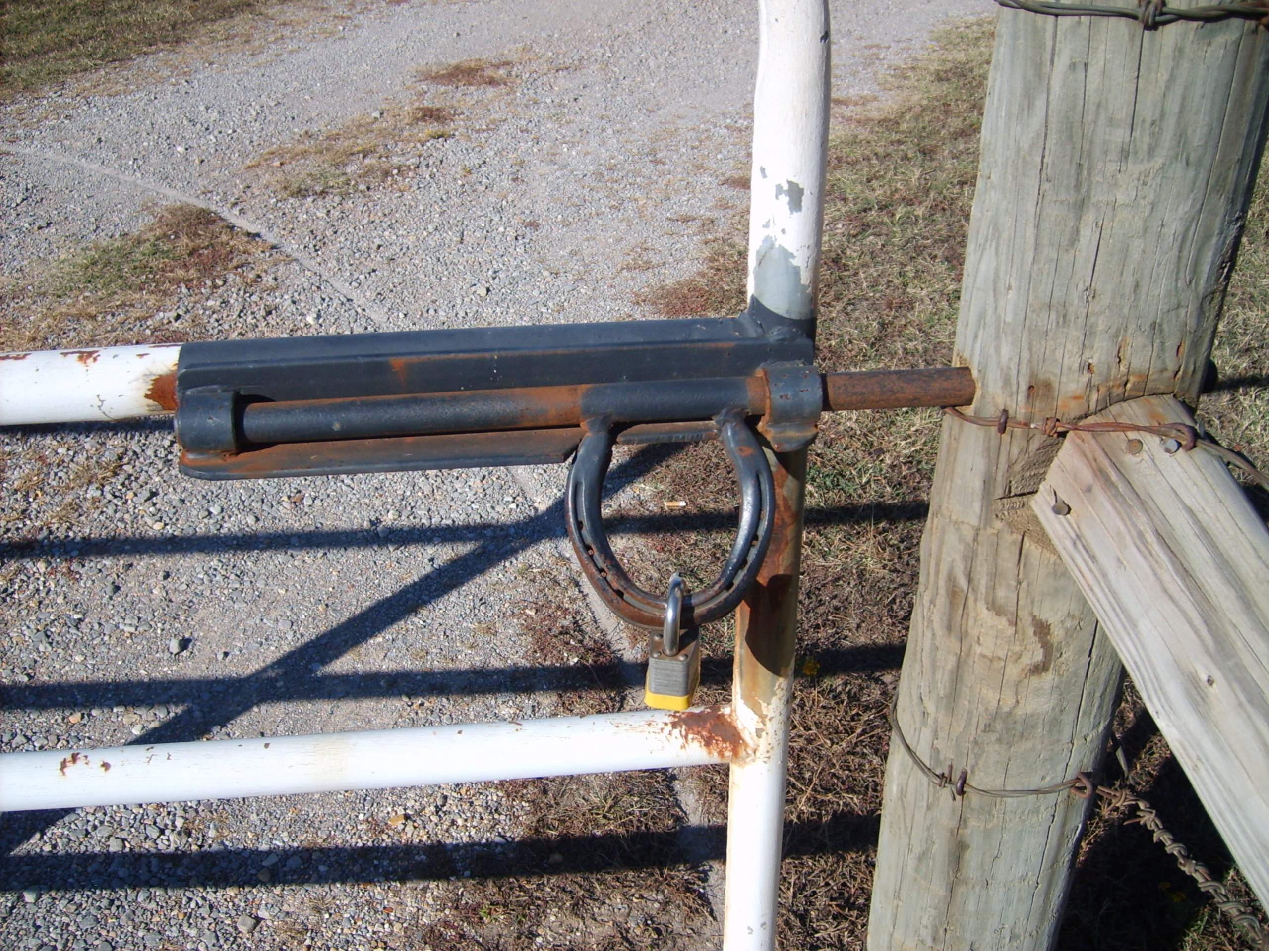 For one gate we have the pipe and T piece type with the lock in the pipe catching the T piece, but with a farm gate I couldn't get that arraignment to work.