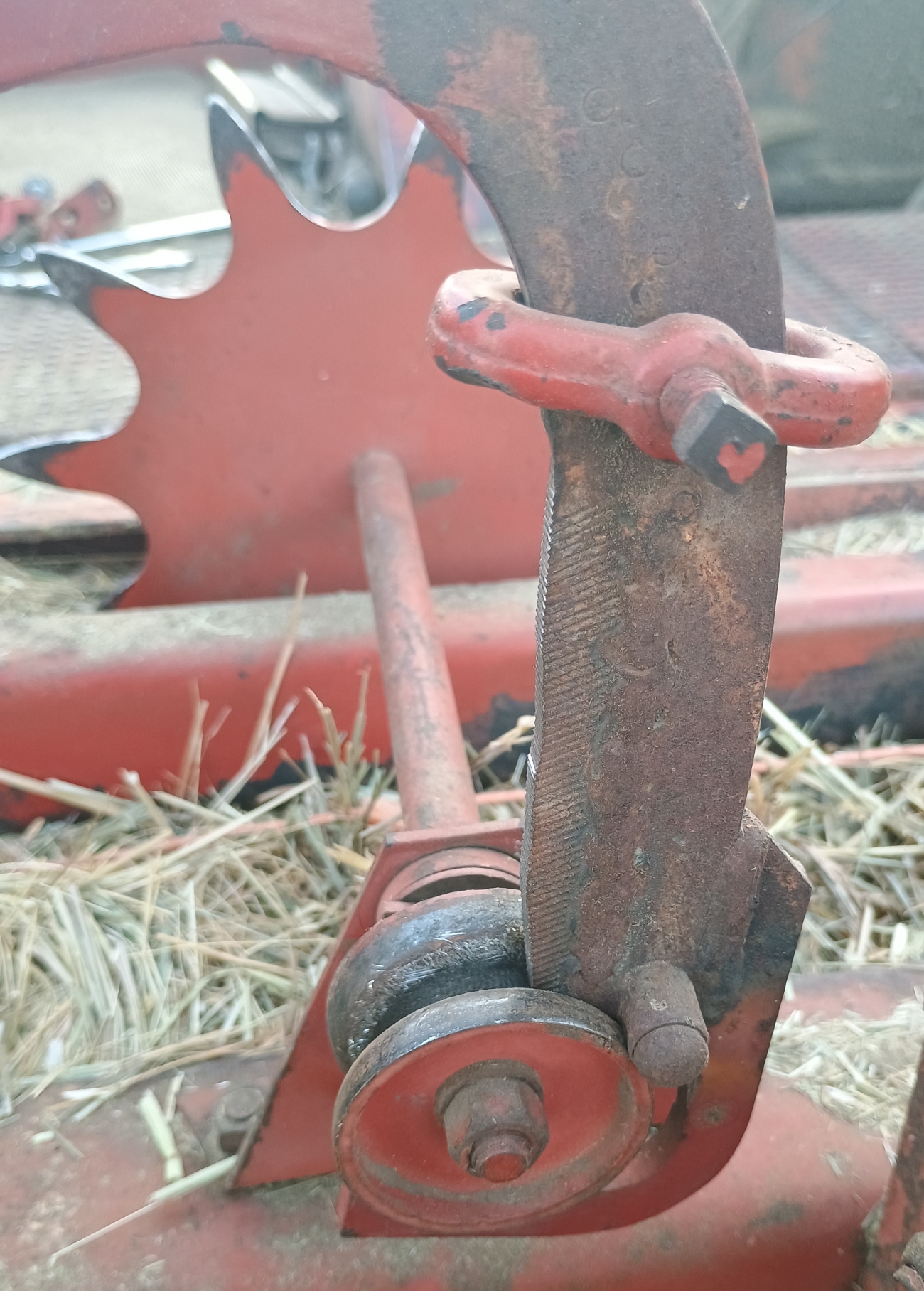 Looking at it, that is an old flat file that somebody has welded onto the bale length counter. I would have hit the edges with a grinder. No idea why the edge is so wavy. Perhaps the person that did it failed to do a good heat treat/temper after welding.
