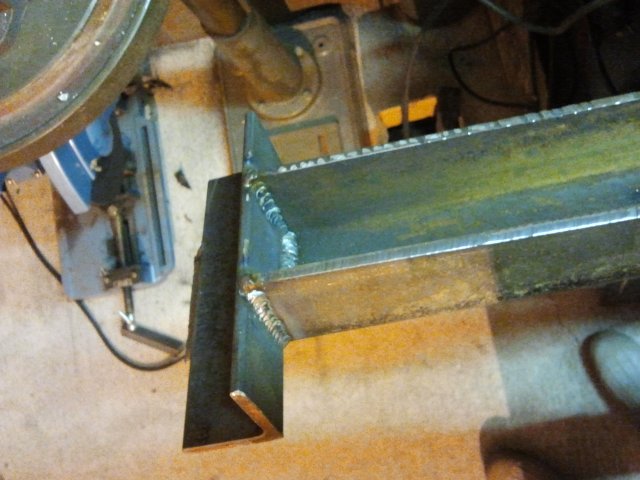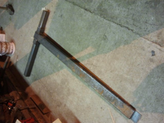 1.5 x 1.5 x 7" angle welded in the notch to reinforce the "big" end end, and will keep the forks aligned perpendicular to the frame.
