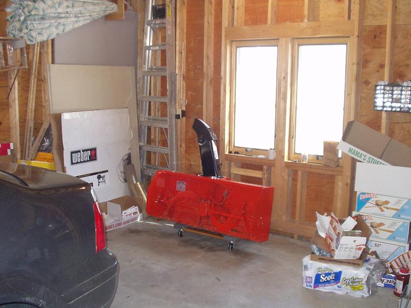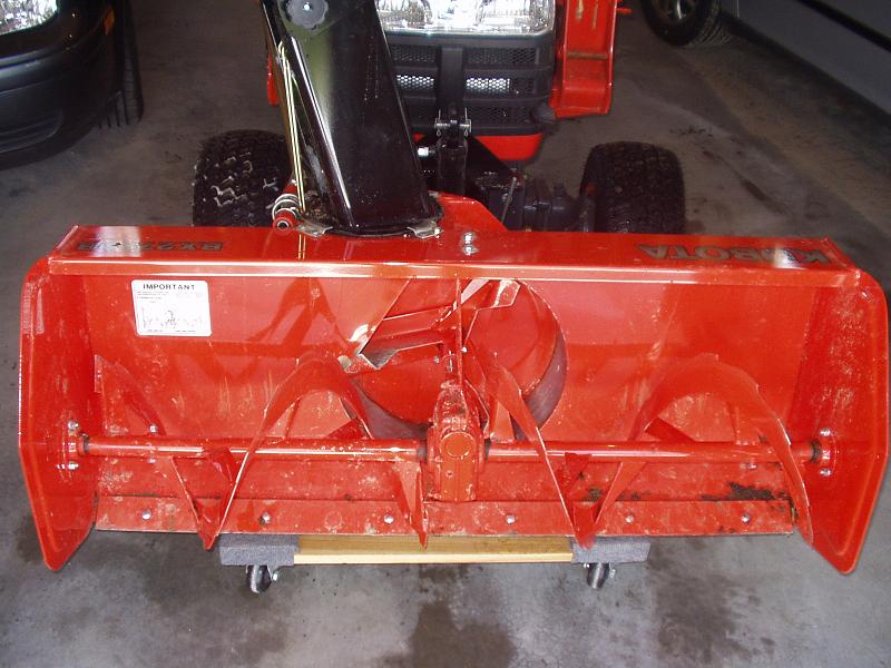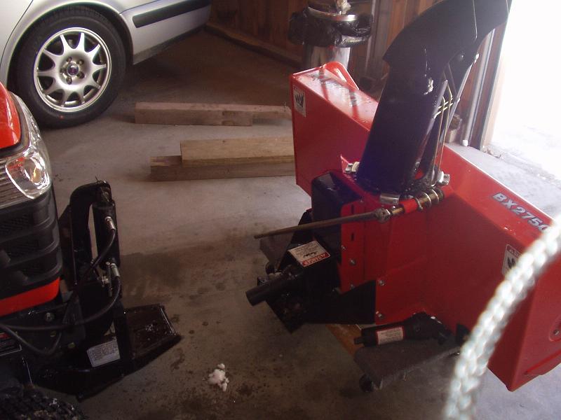 Just in case they're right, I like to keep the cars and the tractor in the garage. As you can see in the attached picture, space is kind of tight when I do this, so I was looking for a system to put the FEL and snowblower each on dollies so that I can still do the swap in tight quarters.