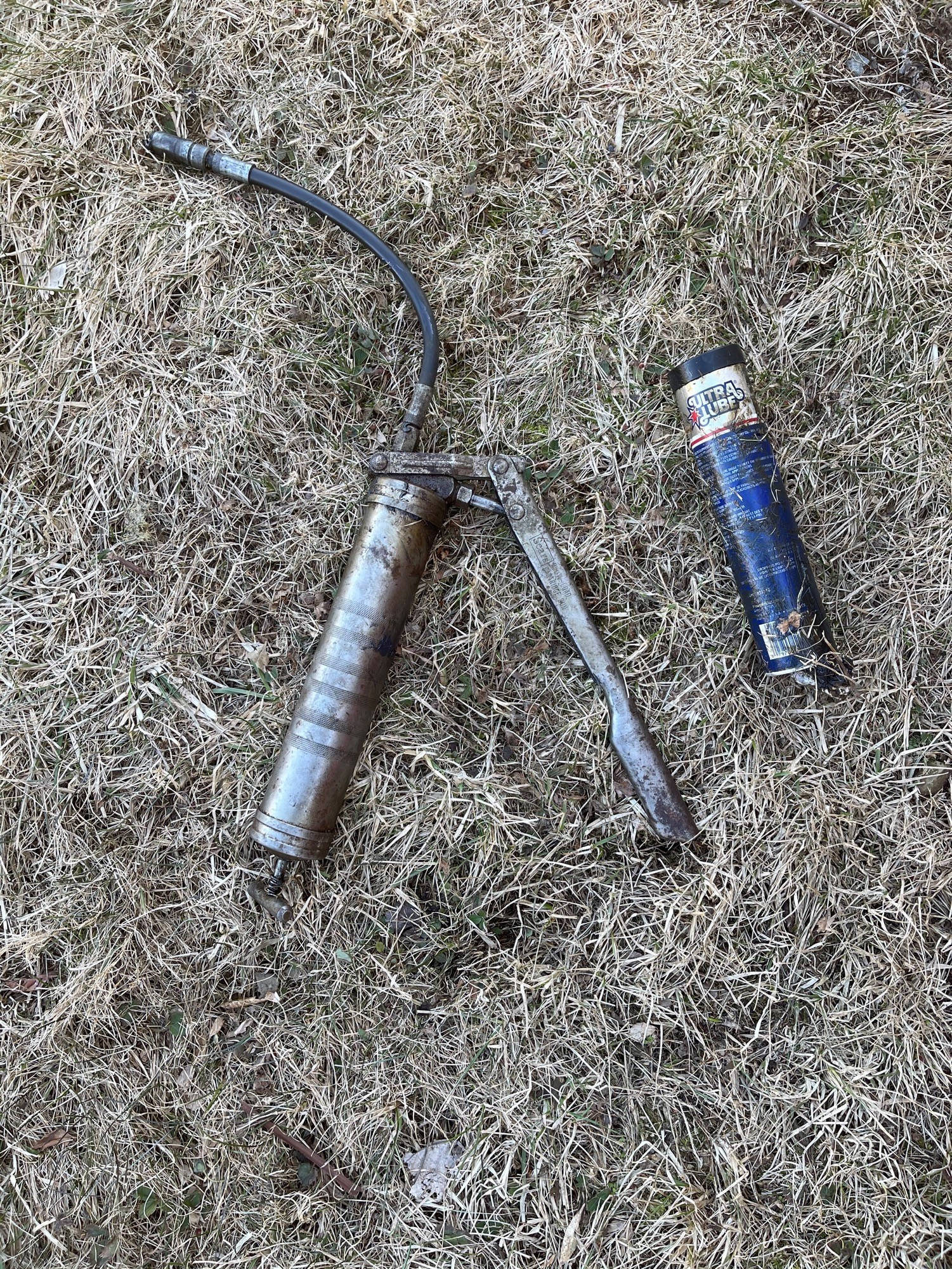 Yup. L&L with a Dewalt 10,000 PSI cordless gun and an IPA grease rejuvinator for those zerks that are jerks. Work smarter, not harder.
