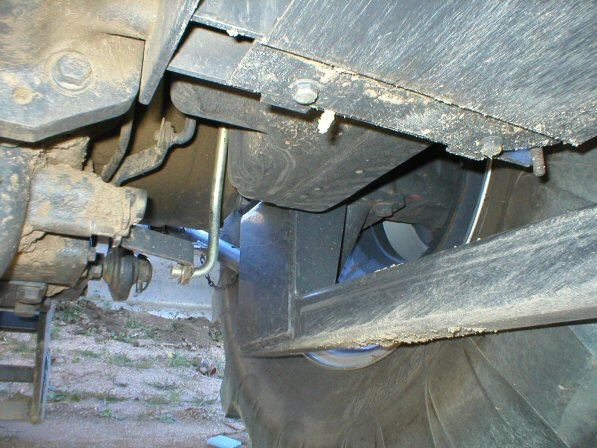 Brandi, glad it looks ok to do on yours too. I had to notch the flange edges to get by the bolts holding the angle bracket. Only lacks about 1/4". That driveshaft cover is sheet metal? If nothing got crushed under it your ok in that area. Where its critical that the cover not bear against stuff is up front where the hard hyd lines for the P/S cyl go in. One of my hyd lines got bent causing the rigid to flex connection to rub against the inside of that shield. Consequently the slight movement of the P/S cyl flexed the rigid tubing and it cracked in the bend. It was a high pres leak but soon enuf youre dead in the water or field or woods unable to steer.bindian said:Larry,