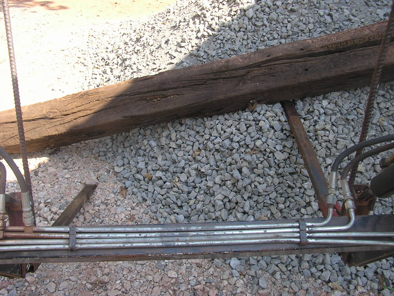 View from the seat of the independent forks picking up a RR tie laying at an angle.