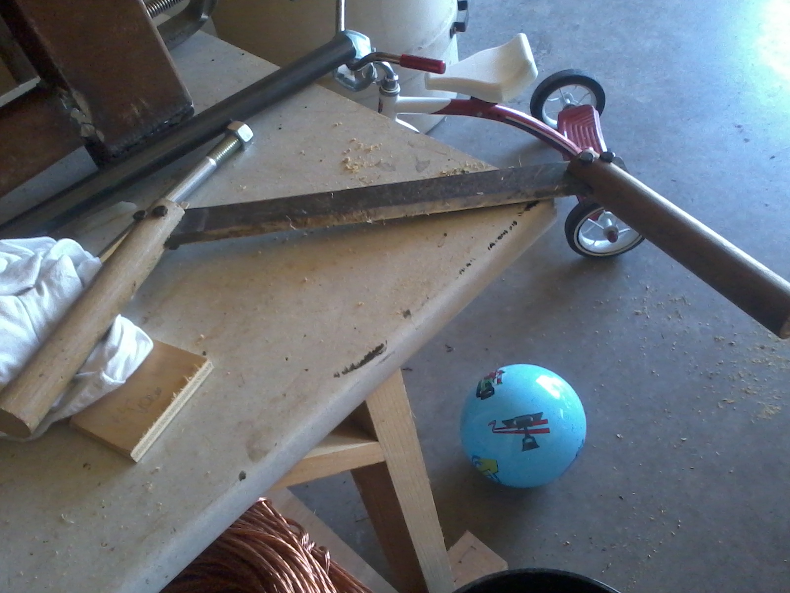 It was working well but seemed almost easier to just pull by hand. Back to the shop, 2 saw horses and a 3/4" chisel (no idea where my draw knives are) and I was back in business. With the exception of 4 that the bark was too dry, I was comfortably peeling 10 an hr. By that math, I couldn't build what I had in mind in that time.