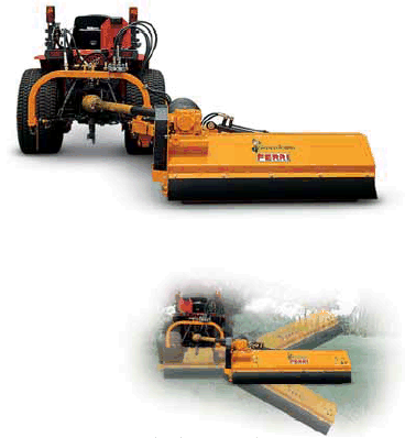 these flail mowers are italian made. they can be offset by six feet and tilt down 45 degrees and up 90. looks to be a very vesitile machine.