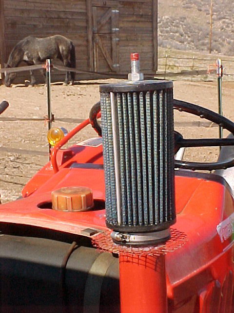 have a few questions if i can get pics to post. 1) i was hoping some one could verify this is a 1700BD. I know its in the 1700 series after looking at serial number. looks different from other 1700D's. It has the gauge cluster&standard manual shift. 2) it looks like there is some front end oil leaking out of this area. I am hoping this is a overflow. I've been working it pretty hard lately.3)last question. I was looking at possibly putting a pre air filter on. I found this set up here on tbn. was thinking about something similar maybe using a LARGE K&N cone filter and large radiator hose. Will this restrict air flow too much when used in conjunction with stock filter? i also posted on the Hoye tech site. im on a fact finding mission