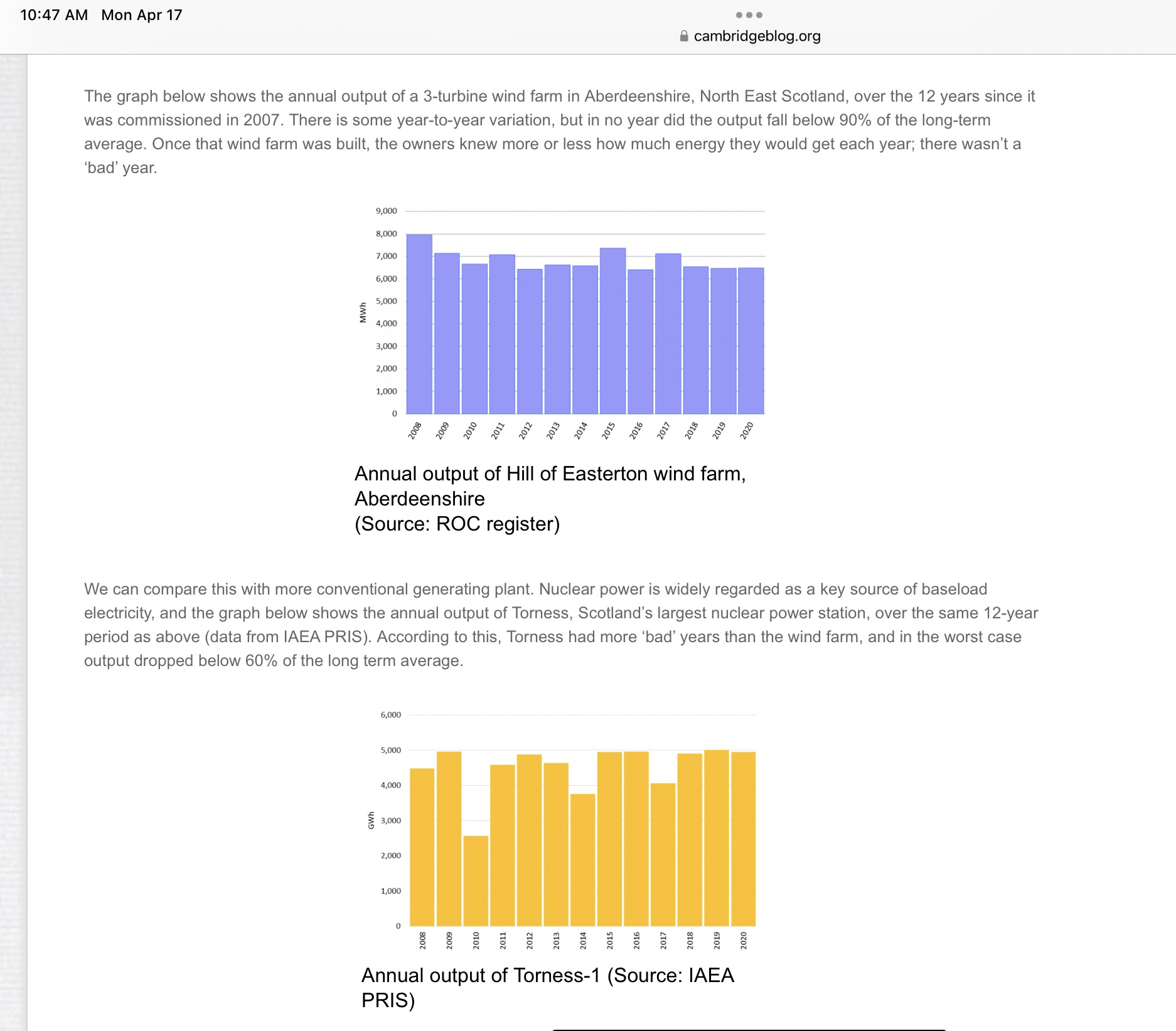 Here's an interesting link that shows a small study that was done in Scotland regarding the reliability of wind VS nuclear.
