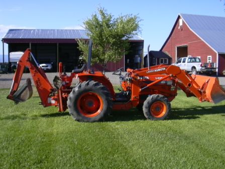 Last Tuesday I hauled home my first big tractor, Kubota L4350 MDT. This tractor was broken in by a septic company who babied it for the first 1500 hours. My uncle sells and services kubotas and said that it was in cherry condition when ever they brought it in. The guy I bought it from said the weakest point on the tractor was the clutch. He said his sons had the tendency to slip the clutch. In 1500 hours, he had to replace it twice. I was reading the brochure and it said that the clutch system was redesigned and actually under warranty for over a thousand hours. On the last clutch replacement job, they messed something up and the PTO would not engage under load. Thankfully, the seller told me about the problem and promised to have it fixed before he sold it to me. He fulfilled his promise and had them throw a new clutch in to start fresh. After driving a B7100 and a B21 for a couple a years, this tractor has POWER! /forums/images/graemlins/shocked.gif
