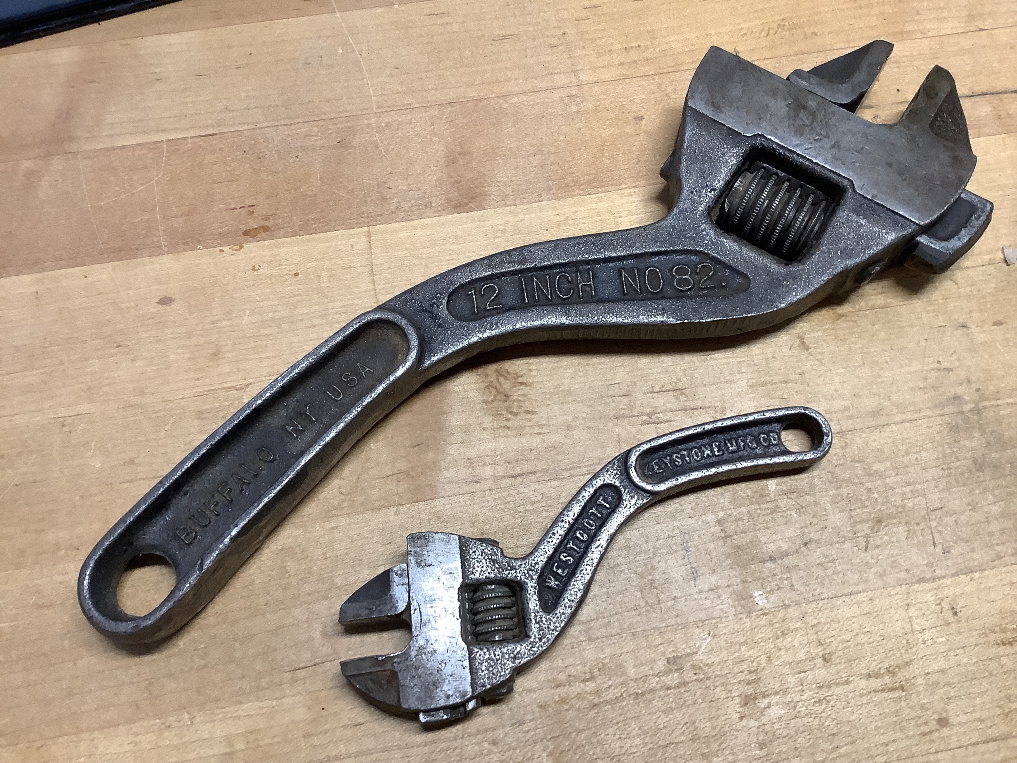 I have some old tools that were my fathers too. Can't read the name on the monkey wrenches anymore. I got them in the early 70's and they didn't look much newer then either.My Dad had this monkey wrench, it came home with me when he passed. This one was made by a company called Coes in Worcester, MA. They were used by railroad workers which used square nuts.