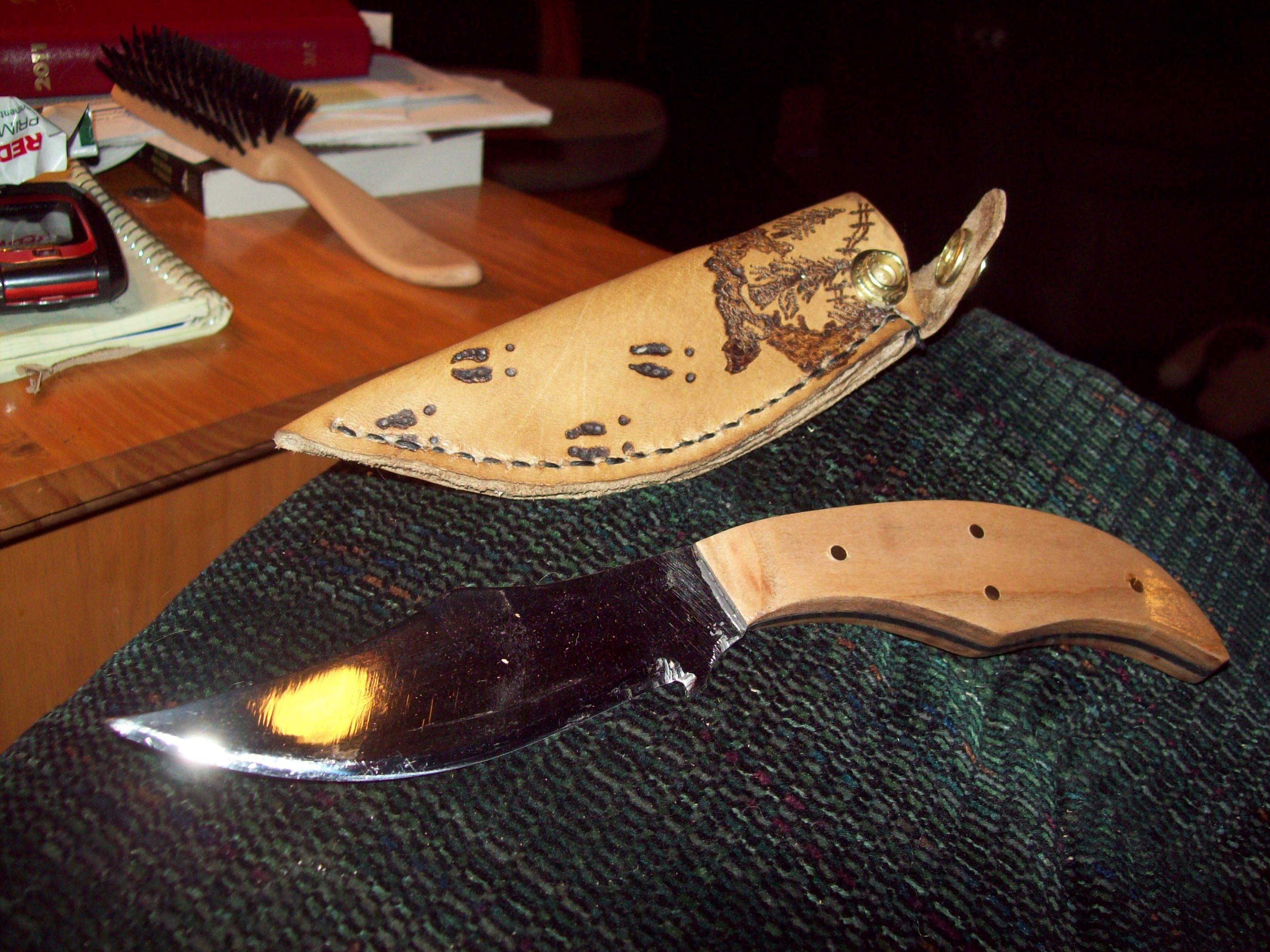 I finished the knife last week and today i did the sheath.I tried somthing i have never done before i used a wood burner and put some deer tracks and and a few trees and a fence on it came out ok i guess. Going to give it to a friend of my sons that lost his dad last year .When we were cutting up my sons deer last fall he came to help and learn.He saw some of my knives and told my son later that he wished he could afford a hand made knife for himself.So this will be a surprise for him from me.
